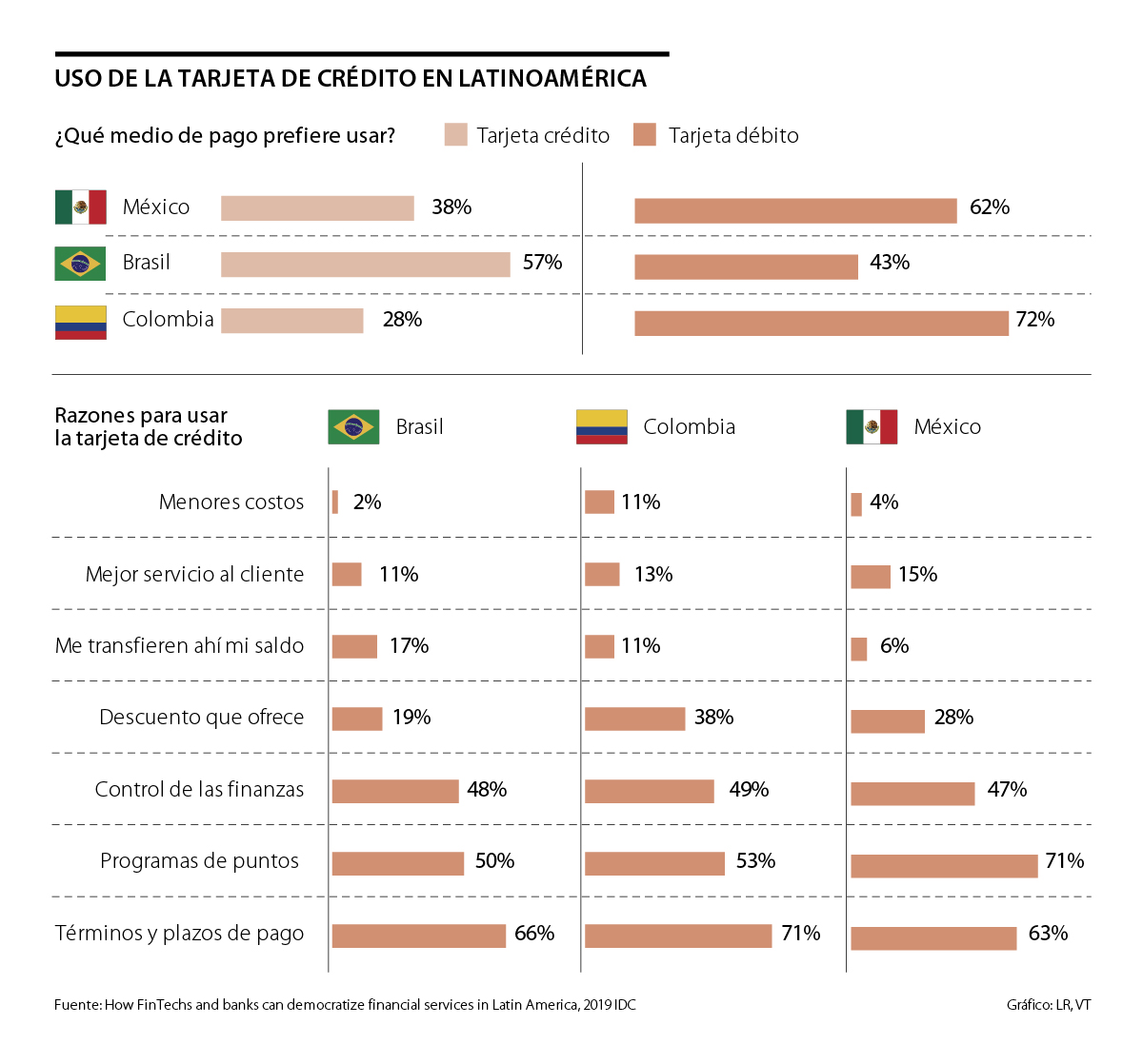 IDC reveló que en Colombia el uso de la tarjeta de crédito solo llega a 28%, mientras que en México es de 38% y en Brasil es 57%