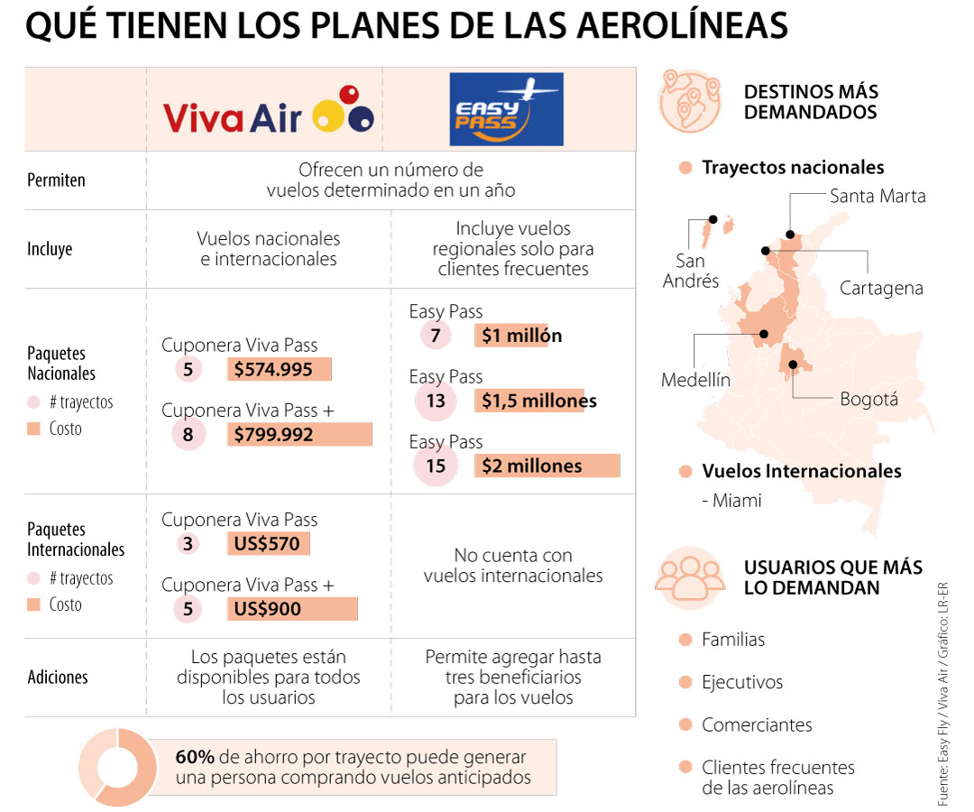 Con la cuponera de Viva Air y el pase de Easy las personas pueden comprar una cantidad de vuelos que podrá ser redimida durante un tiempo determinado y con un ahorro por trayecto de 60%.