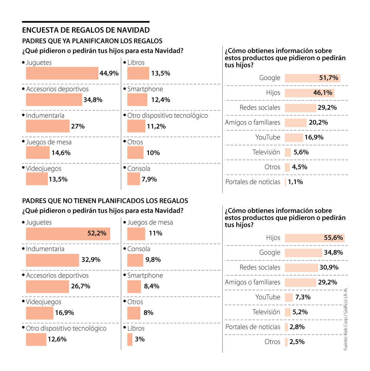 En este estudio también se encontró que la tecnología tiene una participación importante en los regalos que quieren los niños, pues más de 55% de los hijos de los encuestados pedirán o pidieron dispositivos tecnológicos, como smartphones.