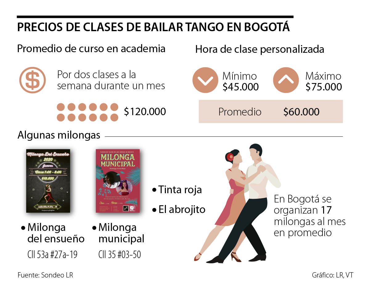 Y en Bogotá, la ciudad más milonguera de Colombia, es decir, la que suma la mayor cantidad de reuniones públicas destinadas a bailar tango del país, con un promedio de 17 al mes, tiene una amplia oferta de clases para principiantes y avanzados.