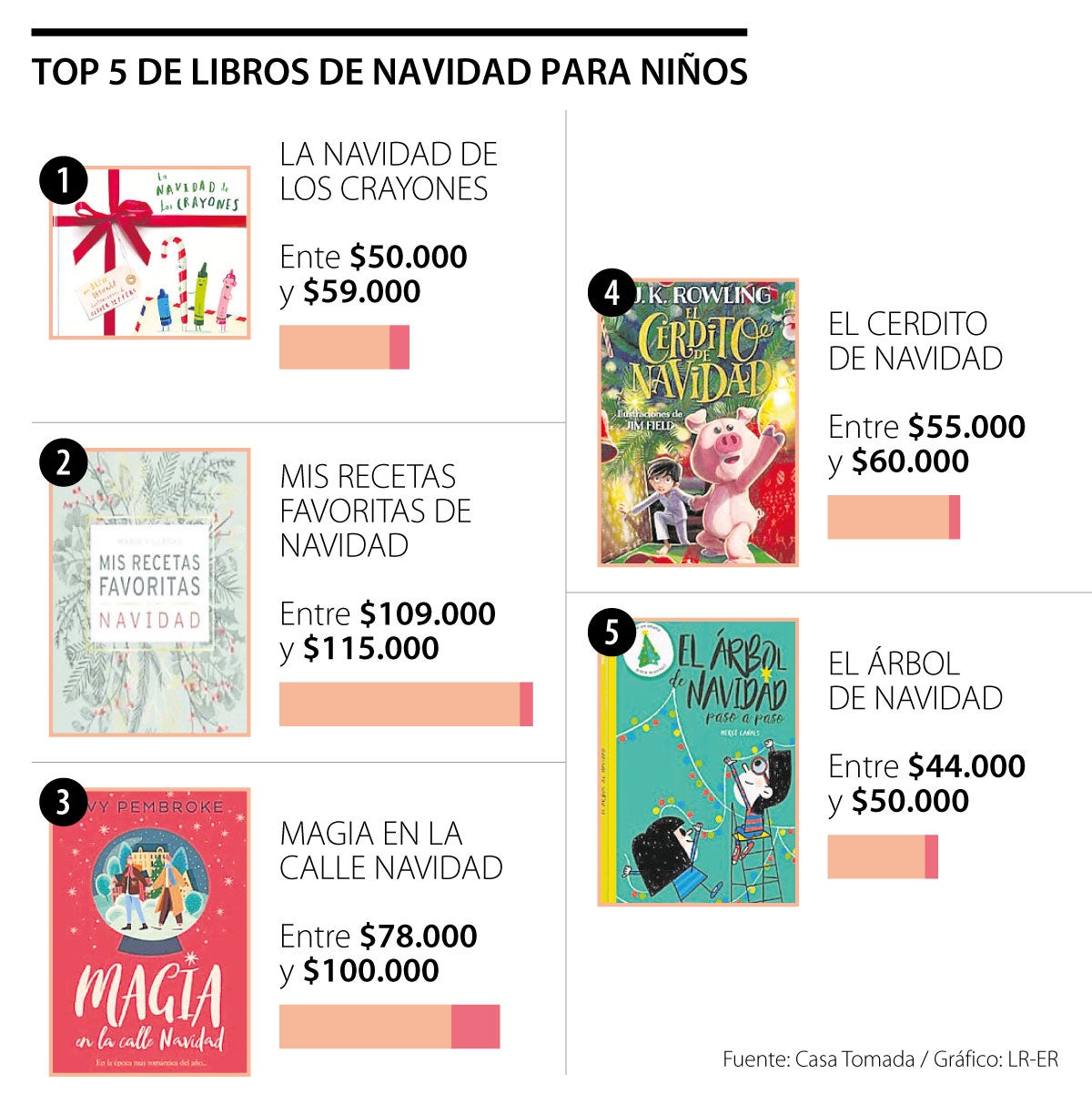 En el puesto tres está ´Magia en la calle Navidad´, que puede costar hasta $100.000. En la posición cuatro está ´El cerdito de Navidad´, sobre la pérdida de un objeto valioso en noche buena. Y, por último, está el ´Árbol de Navidad´, un libro que explica la importancia de este objeto cada diciembre.
