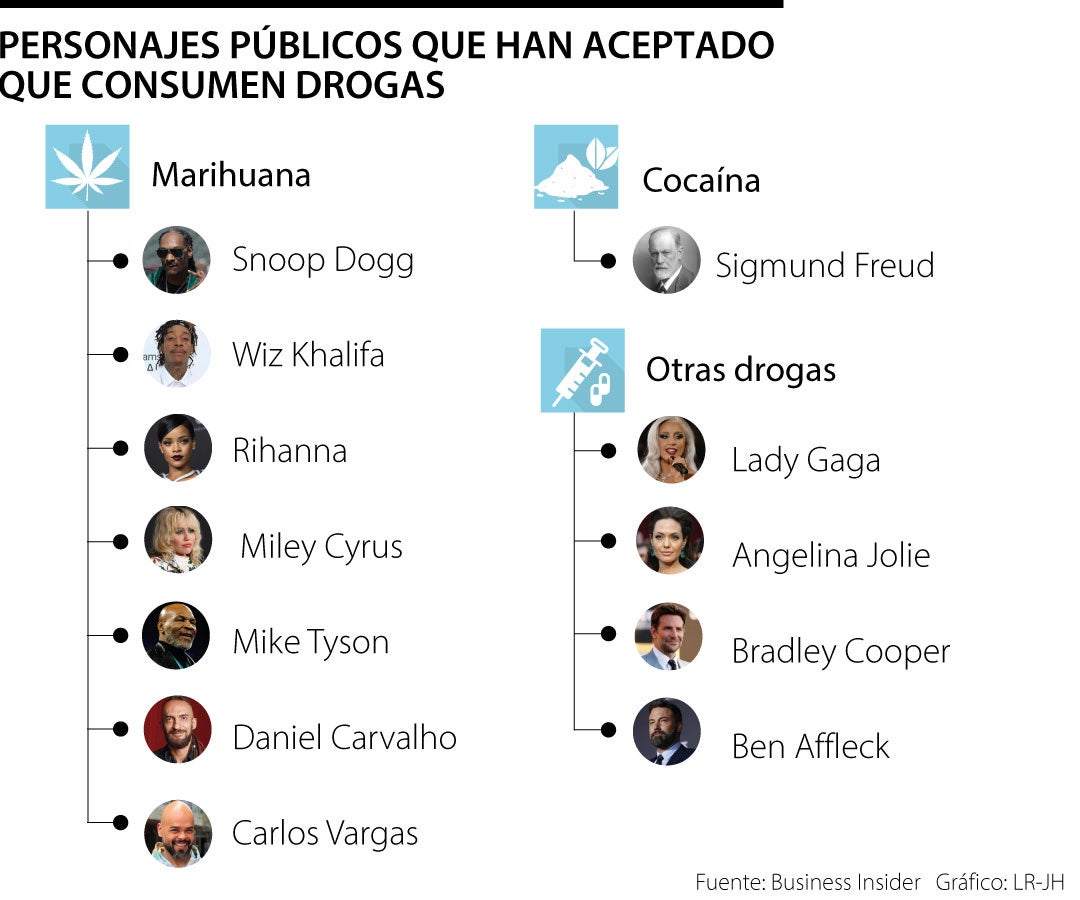 En cuanto a la cocaína, son pocos los que han reconocido públicamente su consumo, pero el caso más conocido es el del psicoanalista, Sigmund Freud, quien la tomaba pura para aguantar largas jornadas de trabajo. Mientras que otros como Lady Gagam Angelina Jolie, Bradley Cooper y Ben Afleck han aceptado que consumían otras drogas más fuertes. Sin embargo, el paso de los artistas por el mundo de los psicóactivos no fue tan positivo dado que usaban sustancias mucho más pesadas que la marihuana las cuales les provocaban efectos adversos.