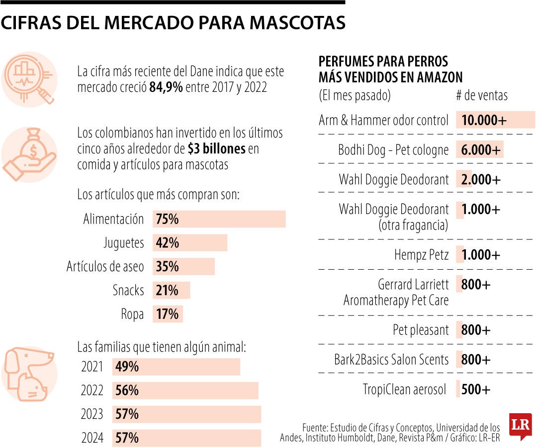 De acuerdo con Euromonitor Internacional (2023), el consumo de productos y servicios para mascotas en Colombia aumentó un 23% en 2022. Uno de los segmentos en que los dueños de mascotas más invierten es en productos para la higiene y cuidado personal para perros, entre estos, uno de los que ha experimentado un crecimiento es el de los perfumes.