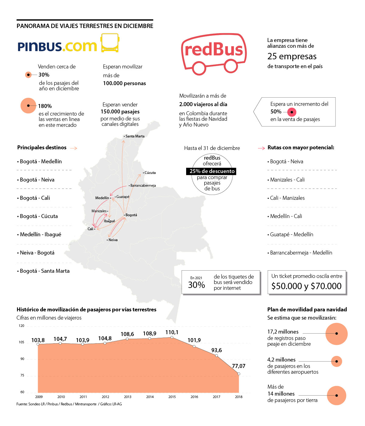 "Este año vemos una preventa que comenzó más temprano que de costumbre; desde el 10 de noviembre. Esto muestra que cada vez hay más planeación en los viajes de transporte terrestre. Solo en diciembre, por ejemplo, Pinbus espera vender 150.000 pasajes por sus canales digitales”, explicó Sebastián Jaramillo, CEO de Pinbus.