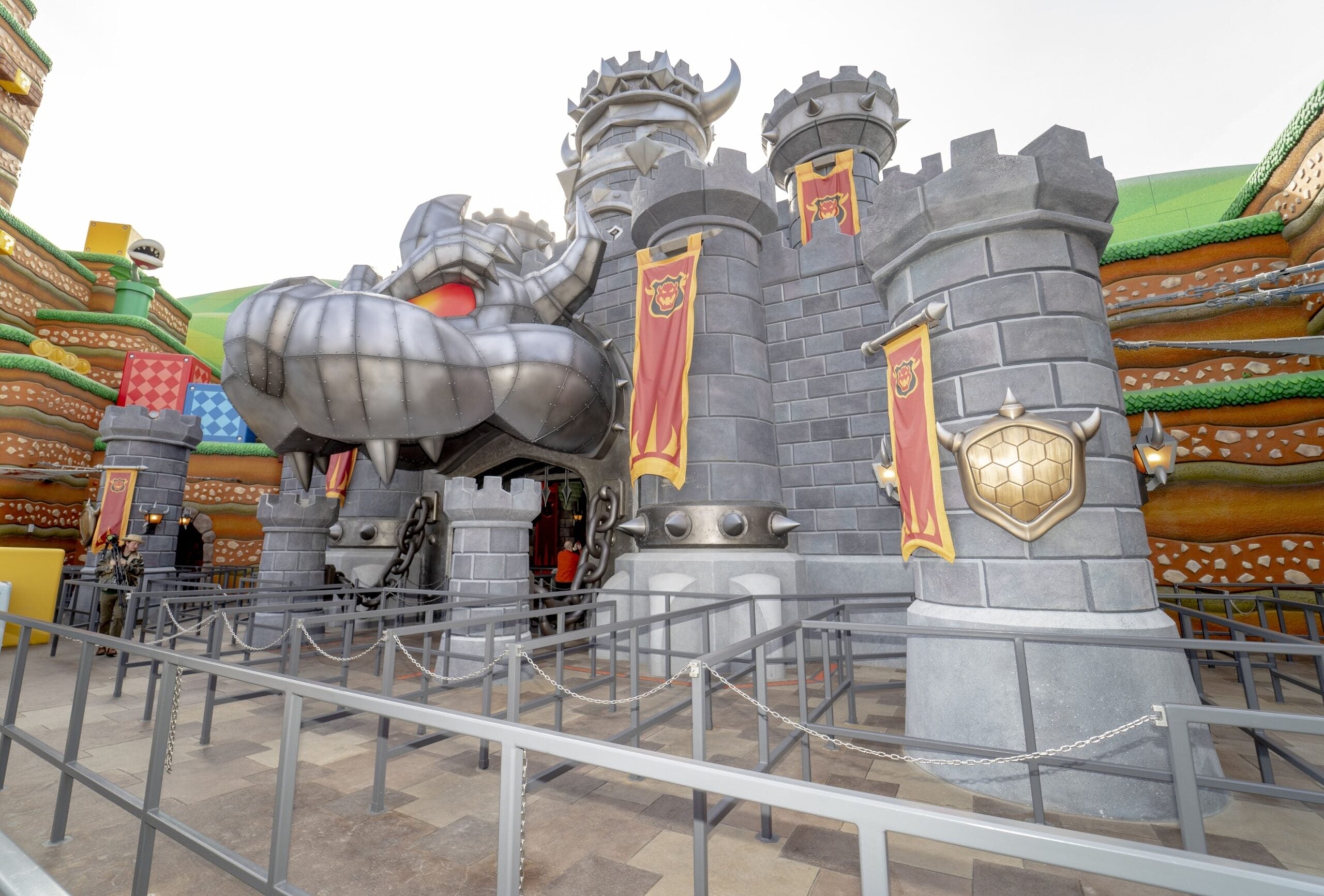 Con una escultura de Bowser, esta estructura se erige como el punto central de la tierra que alberga el paseo de Super Nintendo World. Los visitantes podrán recorrer los pasillos y atravesar sala repleta de medallones y trofeos, por los cuales también son vistos en los videojuegos de Mario que abarcan en el castillo del villano principal de la franquisia.