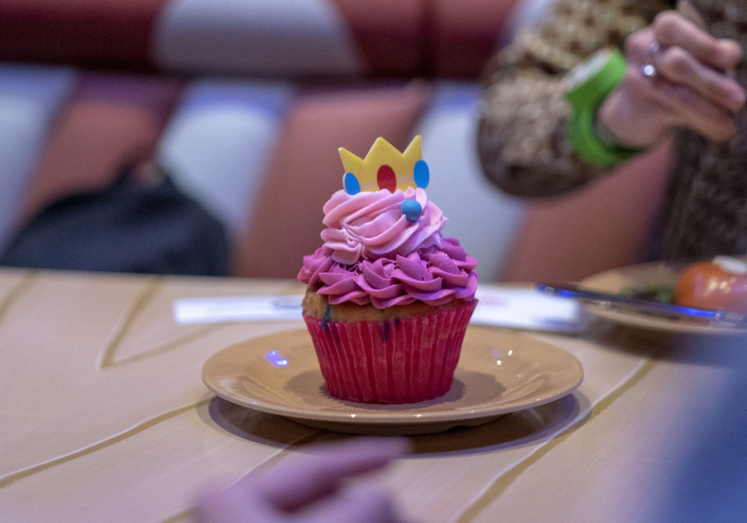 Dentro de Super Nintendo World, podrá encontrar un restaurante llamado Toadstool Cafe, donde un Toad le da la bienvenida personalmente. El menú ofrece una selección de platos preparados con ingredientes frescos cada día. Entre las opciones, se encuentran entradas, platos fuertes y postres que hacen referencia a algunos perseonajes de la saga. Algunos de estos ejemplos son: Toadstool Cheesy Garlic Knots, Super Mushroom Soup, Piranha Plant Caprese, Mario Bacon Cheeseburger, Luigi Pesto Chicken Burger, Bloque Tiramisú y el pastel de la Princesa Peach.