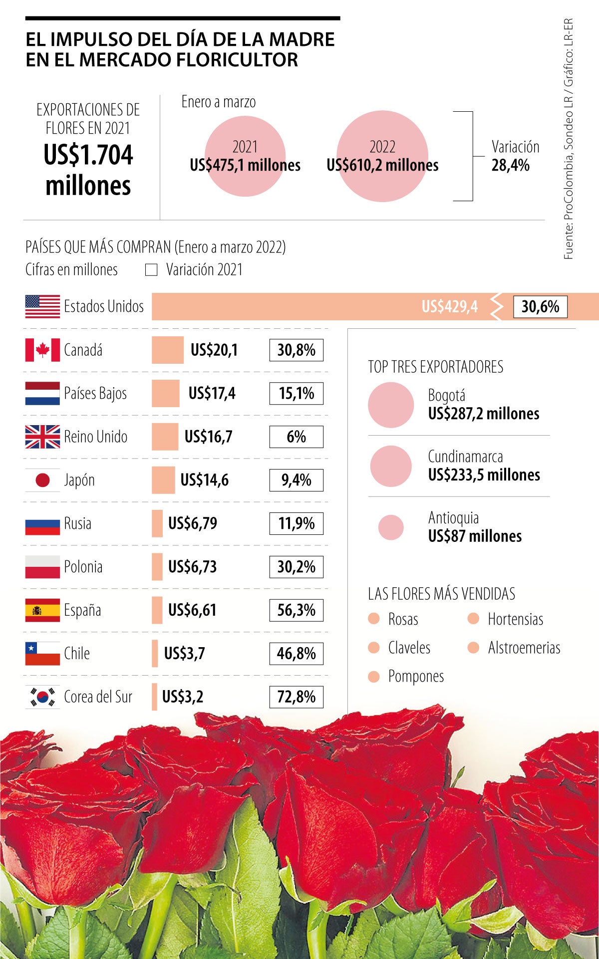 Según cifras de ProColombia, solo en 2021 se exportaron US$1.704 millones en flores frescas, siendo Estados Unidos el país con la mayor demanda. Este año, con menos restricciones y contagios, la expectativa es incluso más positiva.