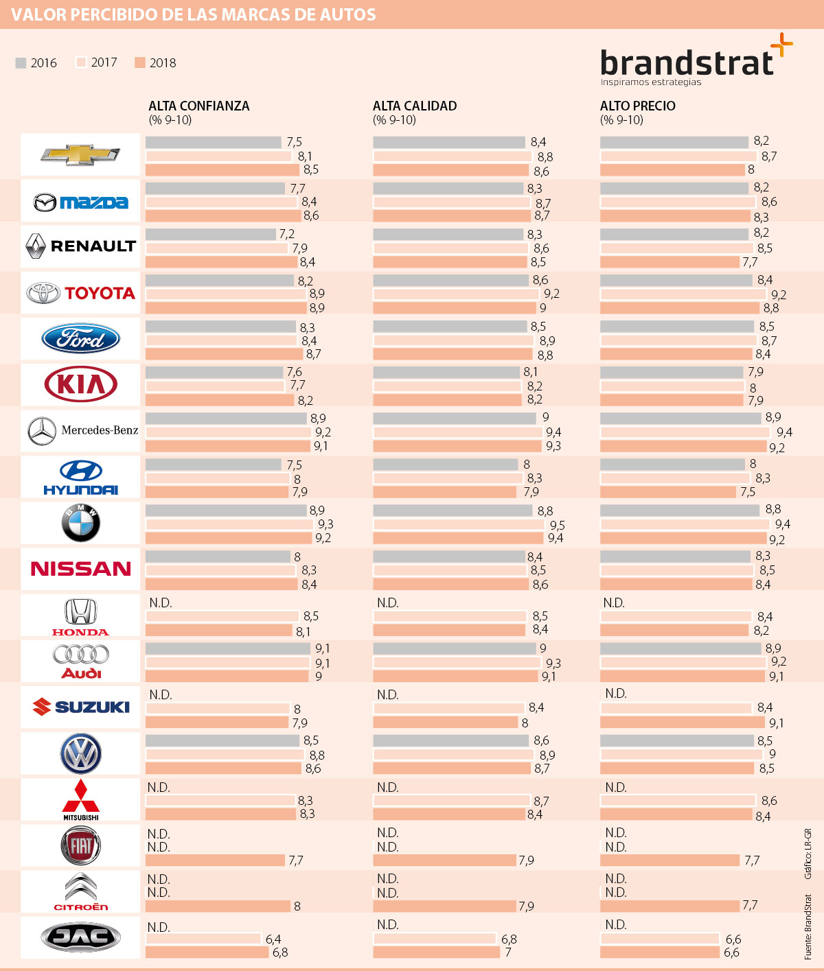 A modo general, BrandStrat dijo que “comparado con años anteriores, las marcas han mantenido una imagen de precio, pero se han distanciado de la calificación de calidad y confianza”.