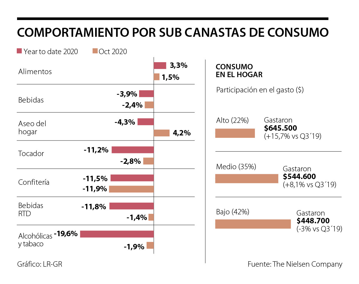 Otras categorías como Alcohólicas, Tabao y Bebidas RTD tuvieron una importante recuperación para el mes de octubre, y la razón principal de su mejoría es la flexibilización de las medidas de asilamiento, además de las reapertura económica acaecida durante los últimos meses.