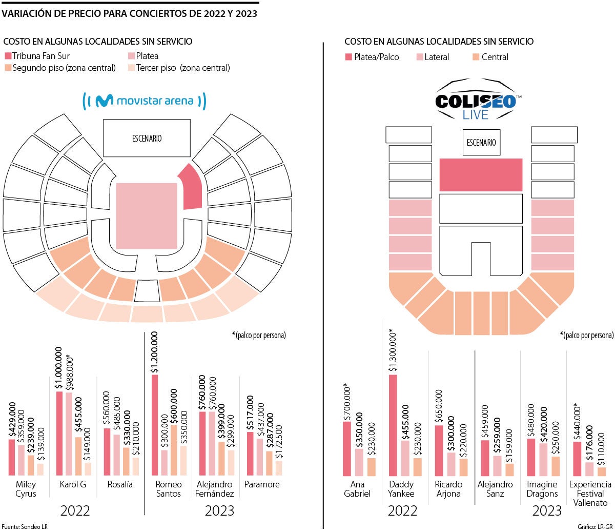 Le consultamos por el concierto de Romeo Santos realizado hace una semana en el cual el costo de la boleta en una localidad de gradería en segundo piso podía costar $600.000, precio que podría ser superior frente a otros eventos en esta ubicación, y Gómez comentó que” este no es de los eventos más costosos que se haya realizado; e identificamos que aunque el precio para este concierto en esta localidad aumentó, en otras localidades como la platea, la boleta era más económica en comparación a otros shows de 2022”.