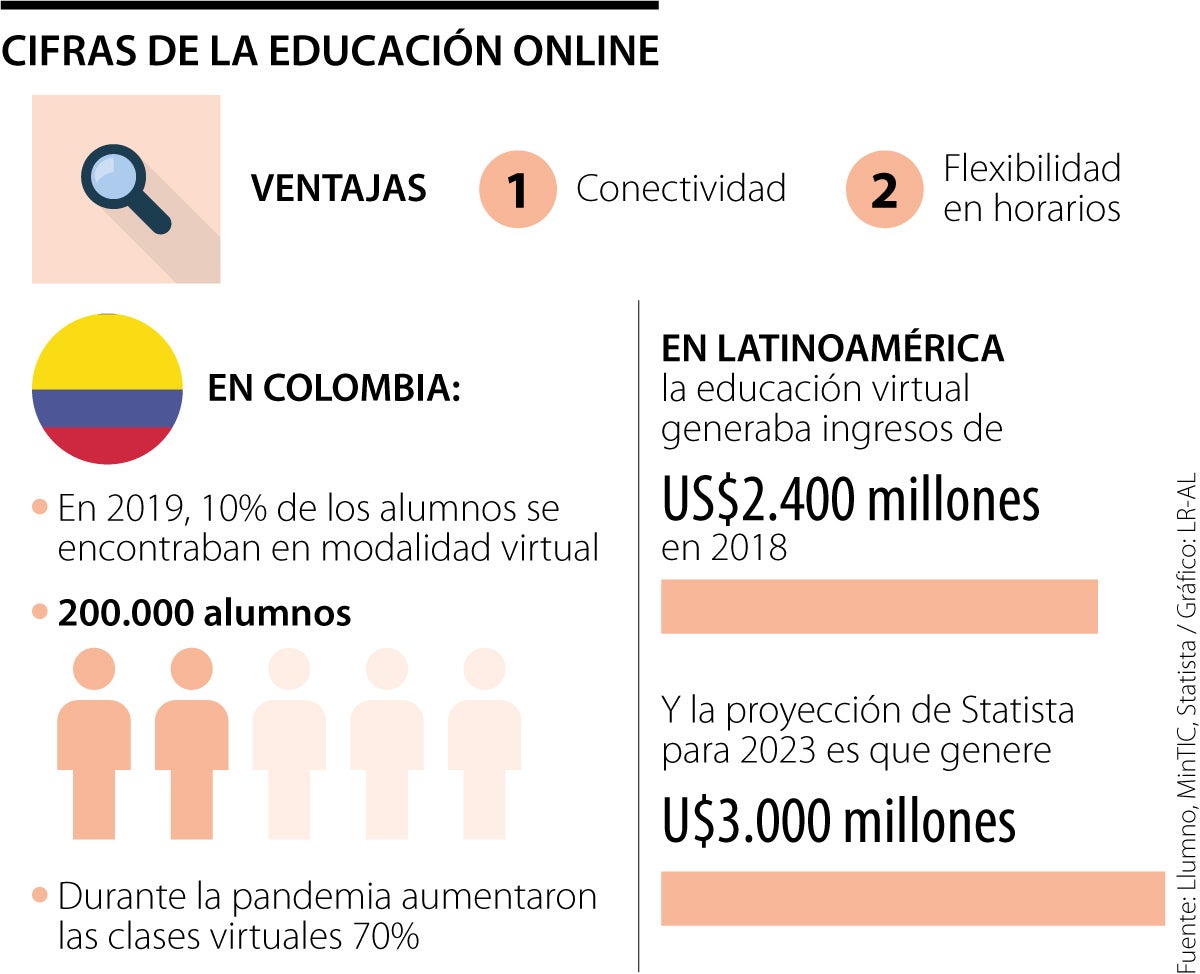 Según un estudio de la Red Ilumno, para 2018 tan solo 10% de los estudiantes en Colombia se encontraban estudiando con la modalidad virtual, lo que representaba aproximadamente un total de 200.000 estudiantes.