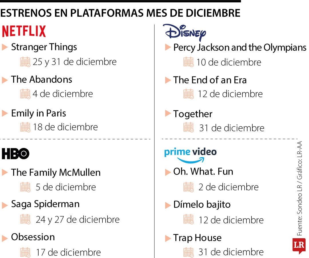 Con el fin de año llegan también las vacaciones y, con ello, más tiempo para disfrutar de buenas películas y series en diversas plataformas. Aquí le contamos cuáles son esos estrenos que no puede perderse.