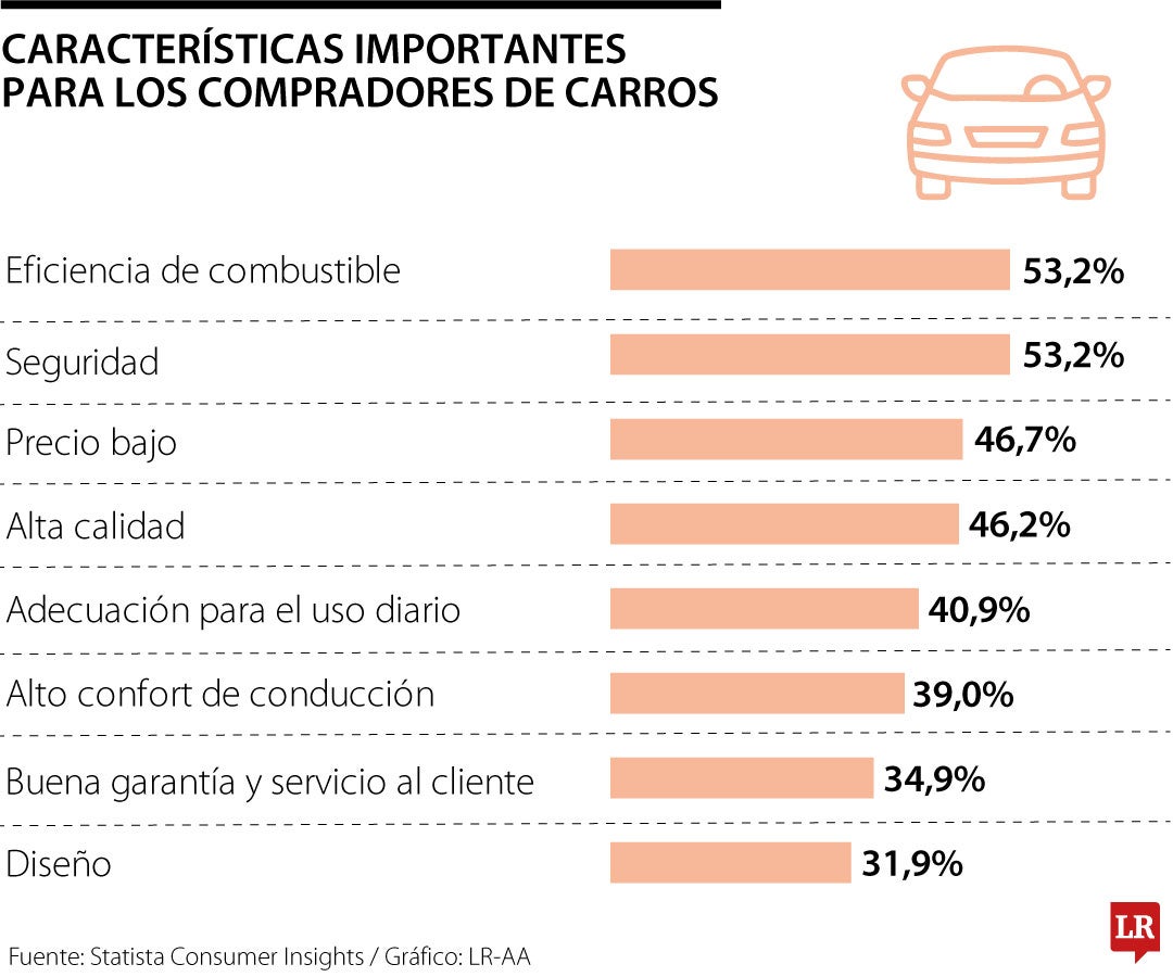 De acuerdo con el informe, la eficiencia de combustible y la seguridad ocupan los primeros lugares entre las características más valoradas. Ambas son consideradas “especialmente importantes” por cerca de 53% de los encuestados que planean comprar un vehículo en los próximos 12 meses.