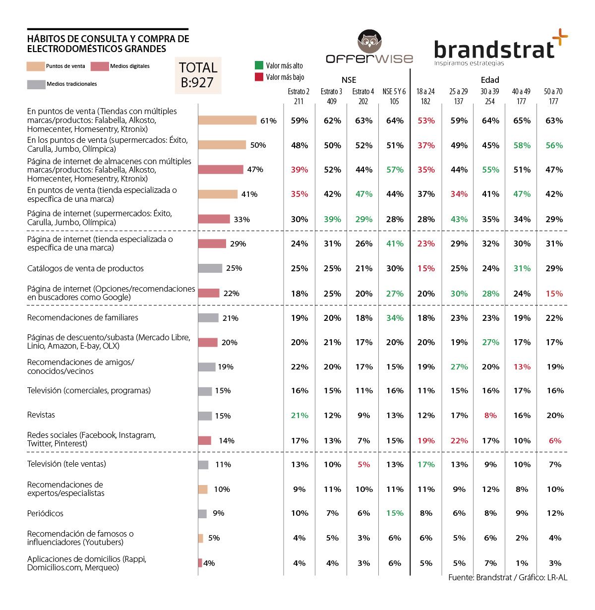 A la hora de buscar electrodomésticos, los jóvenes prefieren empezar sus indagaciones a través de las redes sociales. Esas son las principales conclusiones del más reciente estudio que se hizo bajo una alianza entre Brandstrat (empresa de investigación de mercados y consultoría en estrategia) y Offerwise Panel, experto de consumidores en más de 21 países en América Latina.