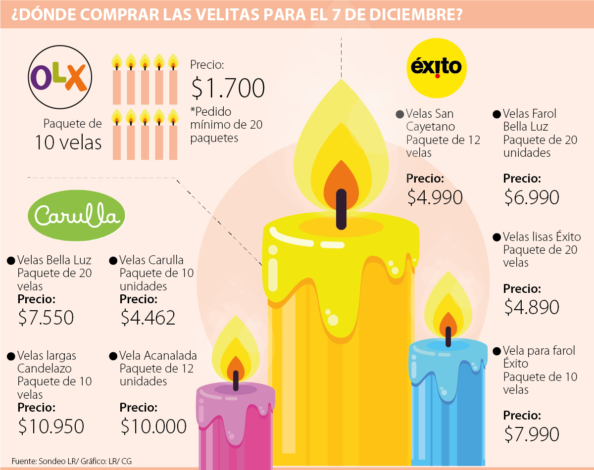 La empresa cuenta con marcas propias de los almacenes Éxito, Carulla, Surtimax y Super Inter. Los precios van desde los $2.900, y varían dependiendo del tamaño, marca, el uso y la cantidad de velas en cada paquete. Para esta época, la cadena cuenta con seis proveedores entre las marcas nacionales y sus marcas propias.
