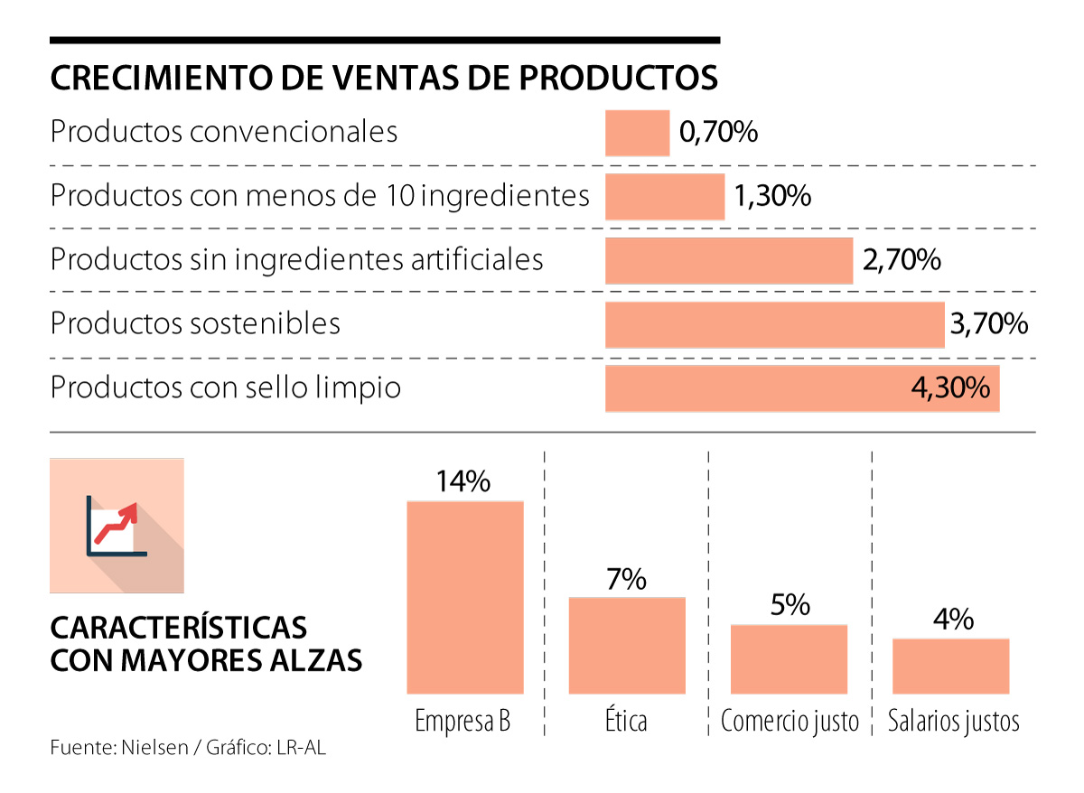 De acuerdo con el informe, durante el año pasado las ventas de productos convencionales solo crecieron 0,7%, mientras que las de artículos con alguna característica sostenible presentaron mayores alzas.