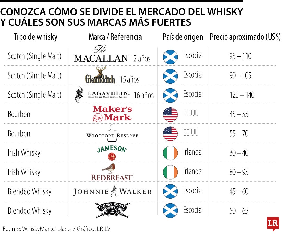 El mercado del whisky se divide por origen y método de elaboración, lo que ha permitido que ciertas marcas se consoliden globalmente