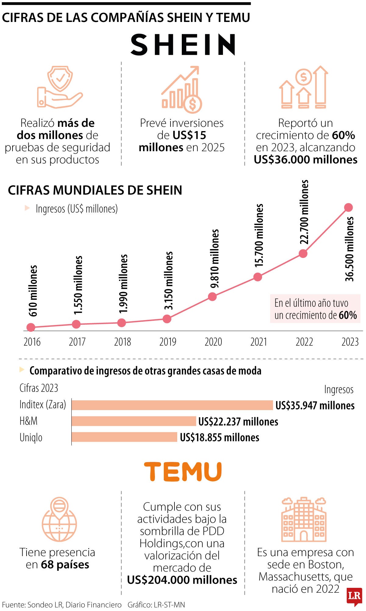 “Shein se consolidó como un referente en la moda rápida gracias a su amplio catálogo de ropa, zapatos y accesorios y su rapidez en presentar nuevas prendas. Su enfoque le permite ofrecer una selección más actualizada de tendencias, lo que atrae a un público más preocupado por seguir las últimas novedades. Si bien sus precios no son tan bajos como los de Temu en algunos casos, siguen siendo muy asequibles”, dijo Burbano.