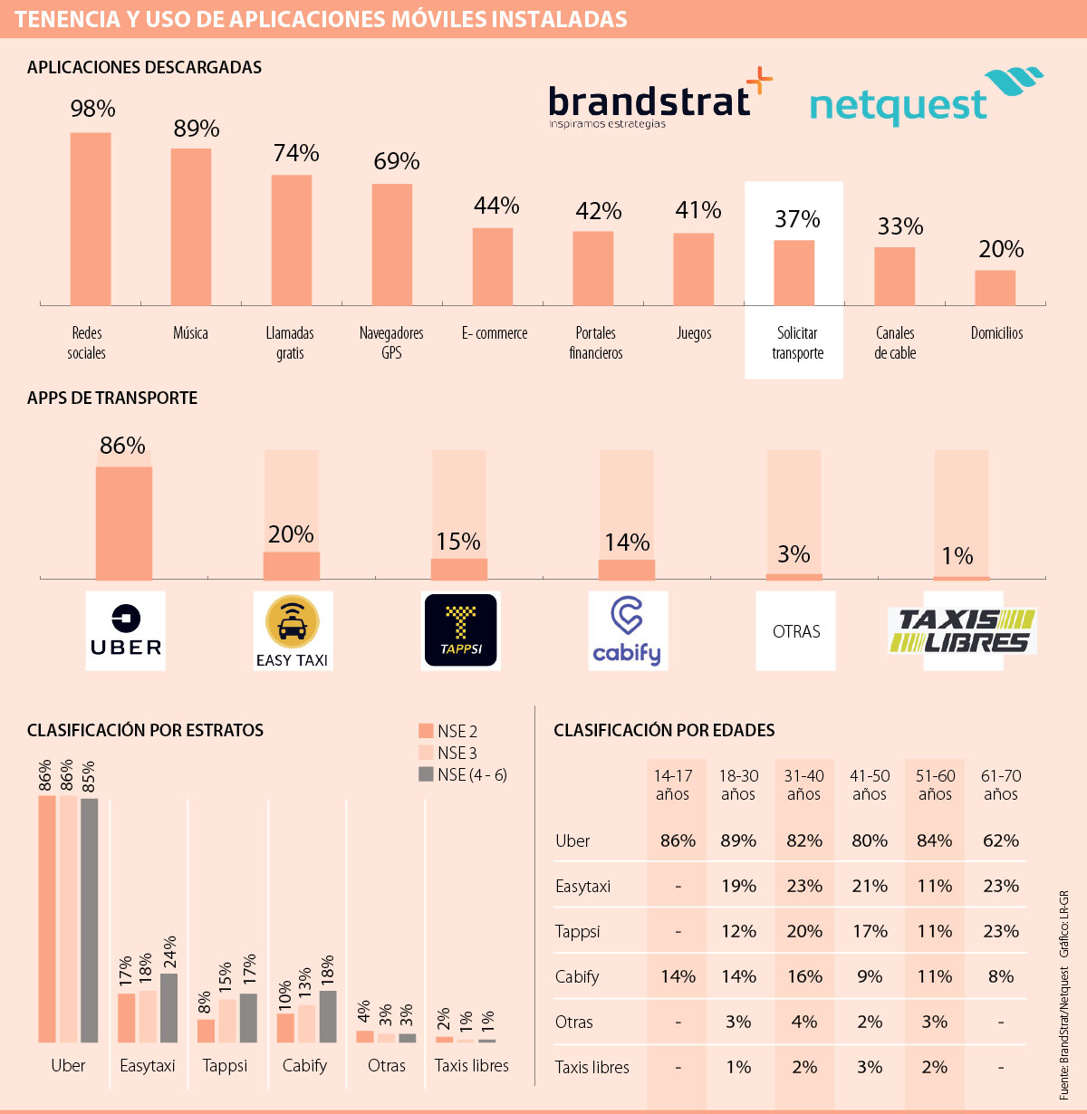 “Respecto a la categoría de apps para solicitud de transporte, Uber continúa siendo la de mayor alcance, con 86% en esta medición, mientras que Easy Taxi es la segunda más usada con 20%”, concluye el informe hecho por la compañía.