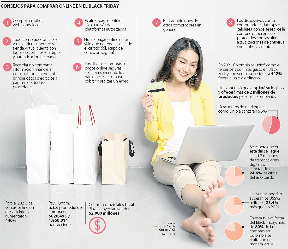 Este día, que por tradición se impuso en Estados Unidos y Europa para ofrecer a los clientes una oportunidad de adquirir a precios favorables miles de productos, poco a poco se ha ganado un espacio en el comercio colombiano. Por eso, desde hace algunos años, y tras la pandemia, el Black Friday se ha convertido en una de las jornadas más esperadas por clientes y vendedores. Tanto es así que, de acuerdo con la Cámara de Comercio Electrónico, esa fecha en 2021 ubicó a Colombia como el tercer país con más gasto, luego de Argentina y Brasil, subiendo las ventas en más de 442% frente a un día ordinario.