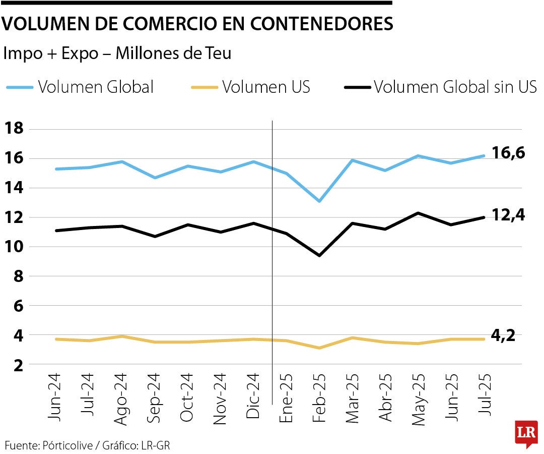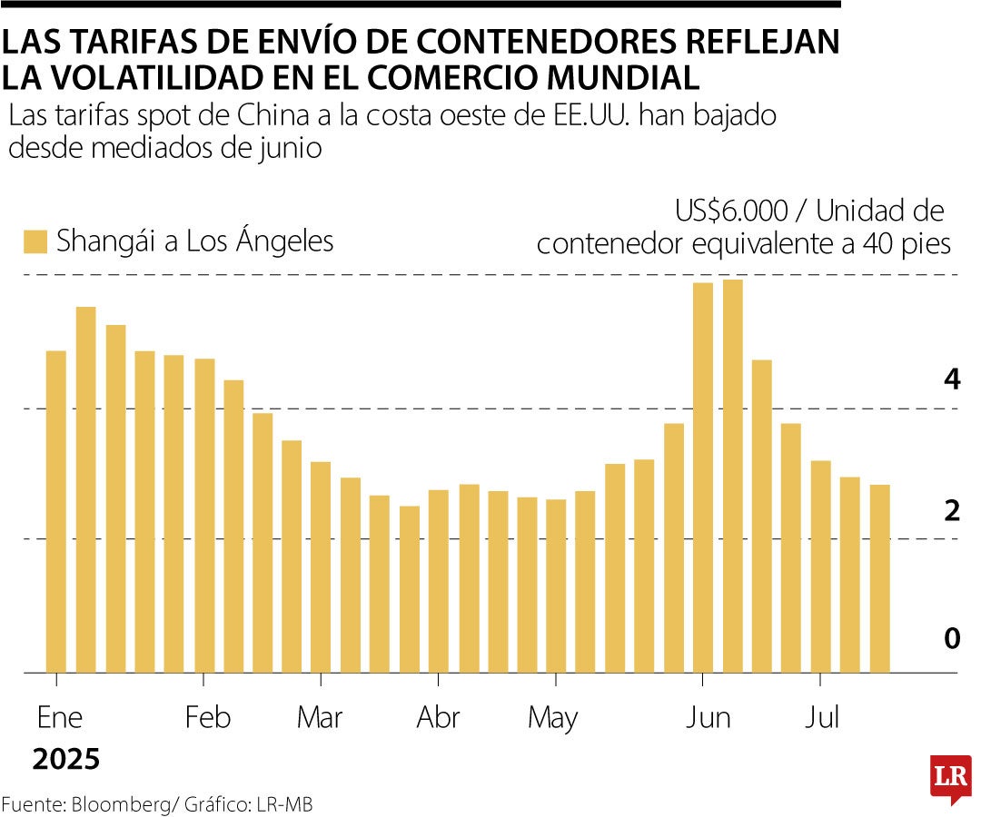 El costo de un contenedor de 40 pies a la costa oeste de Estados Unidos desde Asia aumentó más de 13% a US$4.915 en la semana que finalizó el domingo pasado