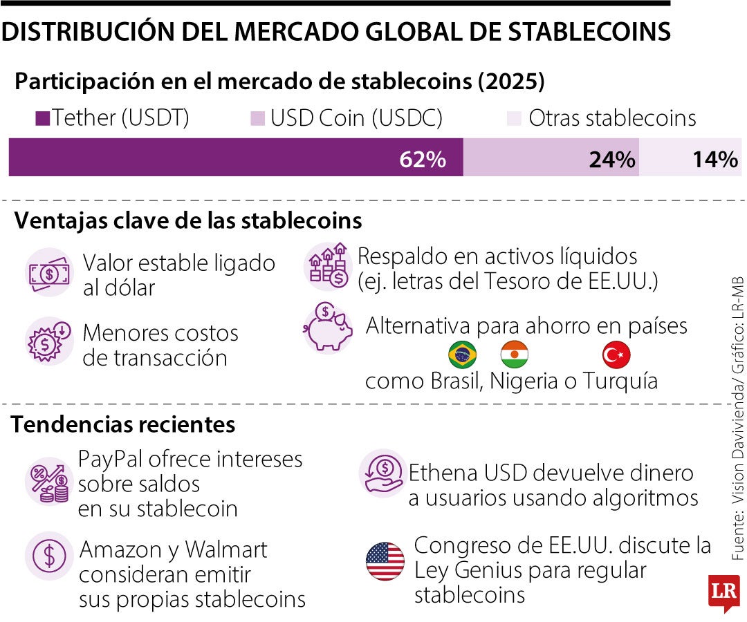 Las stablecoins, en cabeza de Usdc y Usdt, representaron 48% de las compras en plataformas de intercambio, superando a bitcoin el cual quedó en tercer lugar, con 16% de preferencia
