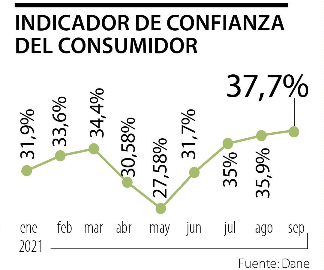 Por sexo, este indicador fue 38,2 para los hombres y 37,4 para las mujeres. Cúcuta y Santa Marta tienen el mayor nivel de confianza