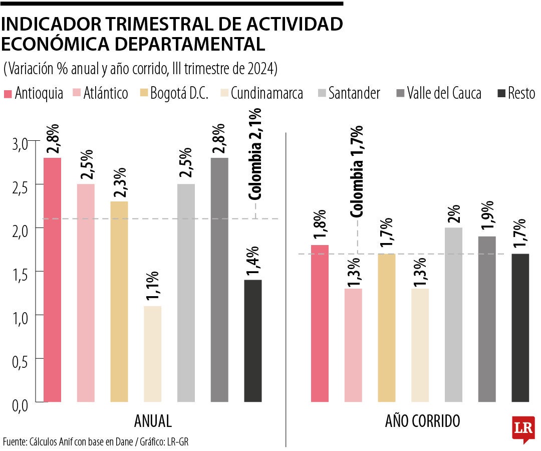 En el segundo trimestre, Bogotá(0,1%) y Cundinamarca(-0,5%) presentaron crecimiento menores al promedio nacional (0,3%)