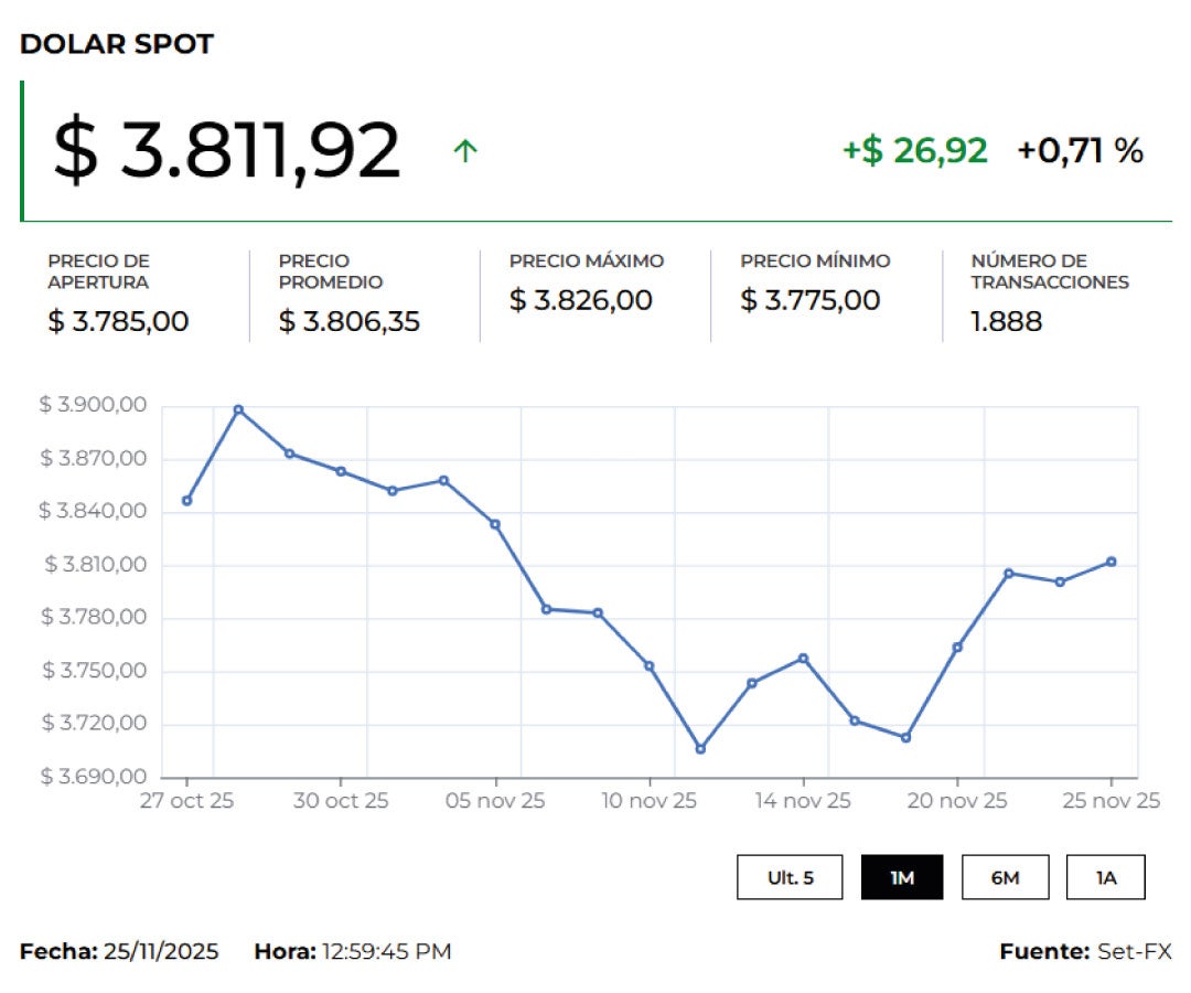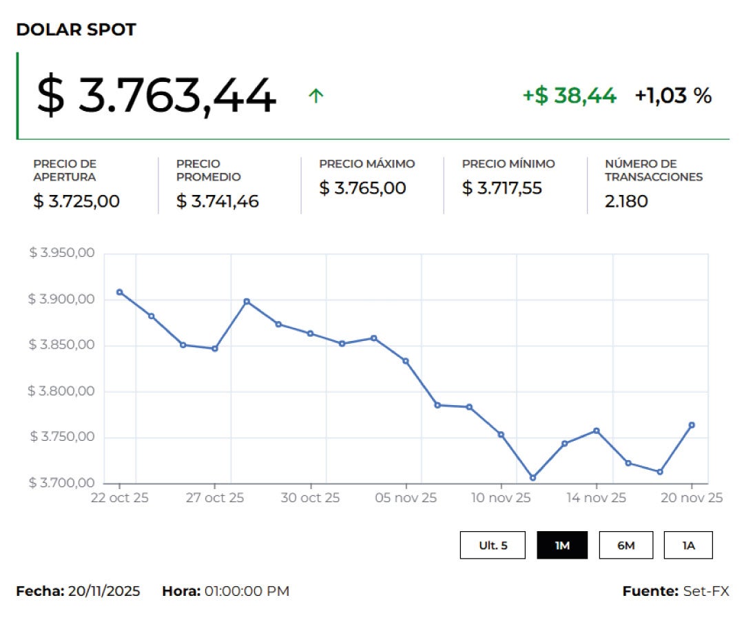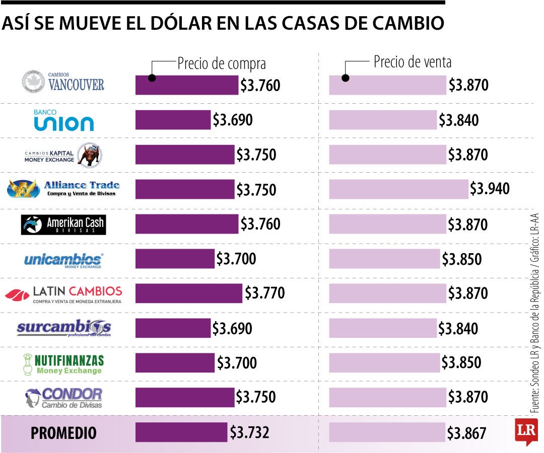 El promedio de venta de la divisa en las casas de cambio es de $3.876; el precio del dólar en la jornada está cerca del umbral de $3.700