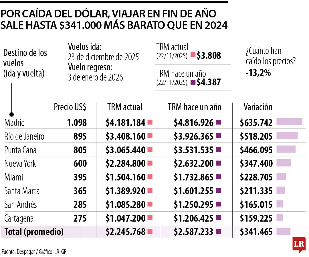 La TRM por debajo de $4.000 hará que las familias que viajen a fin de año vean una reducción de hasta 13% del precio de los tiquetes aéreos