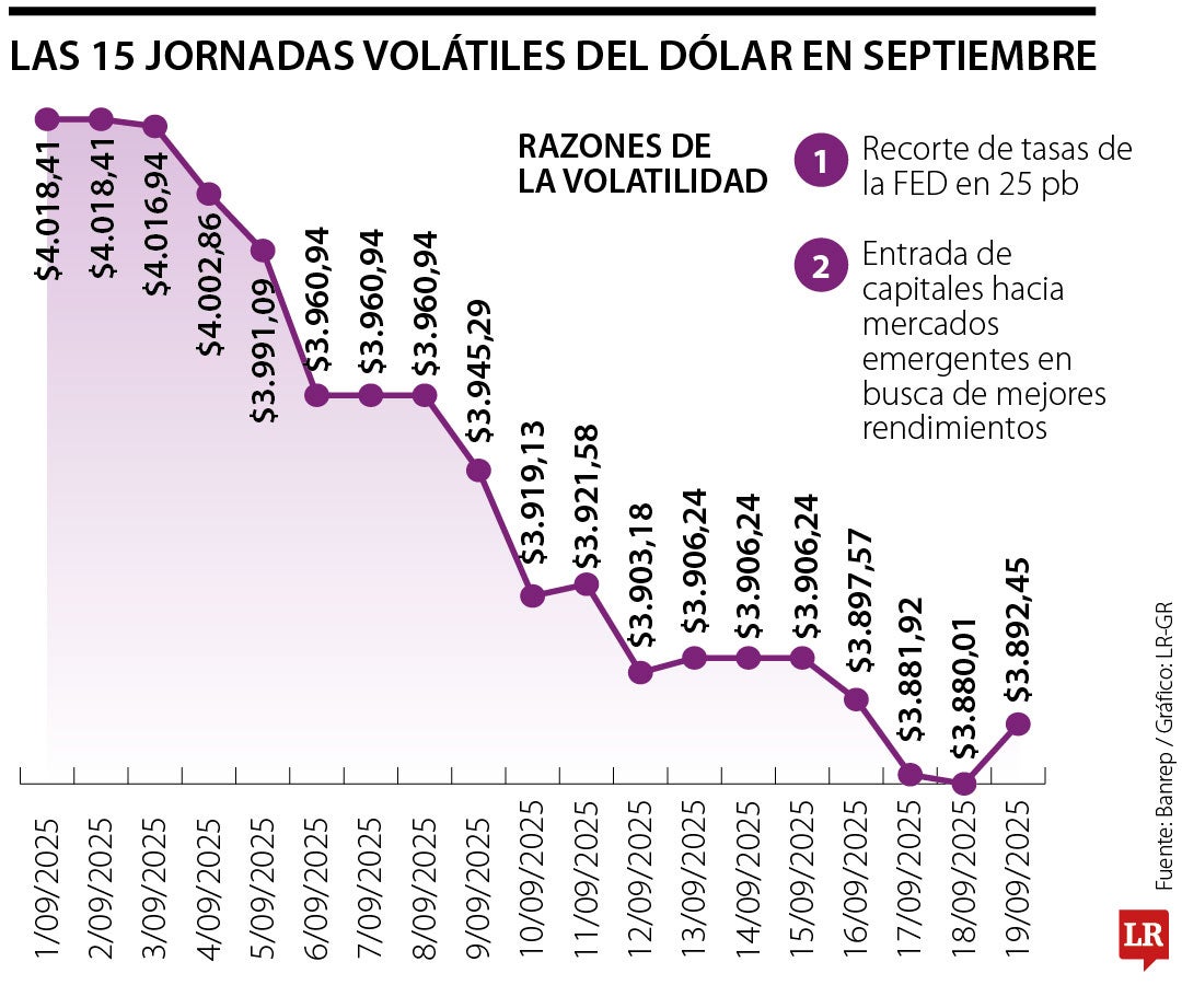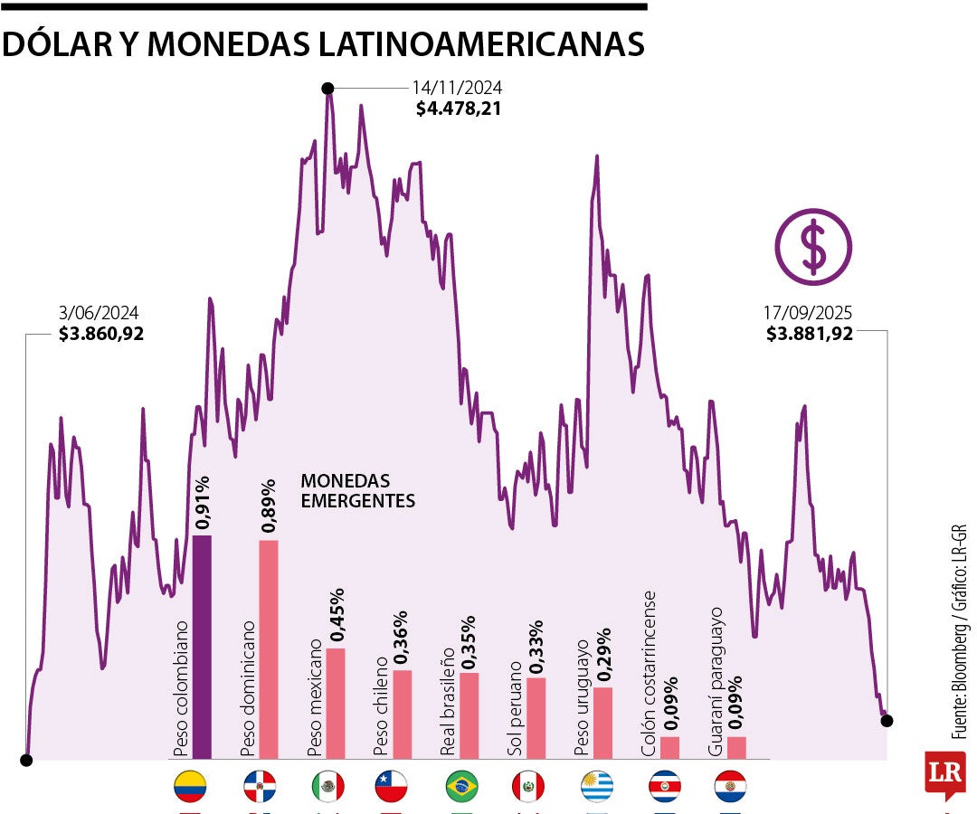 El martes, el peso colombiano fue la moneda más revaluada de la región, además,en lo que va de 2025 el dólar ha perdido $527