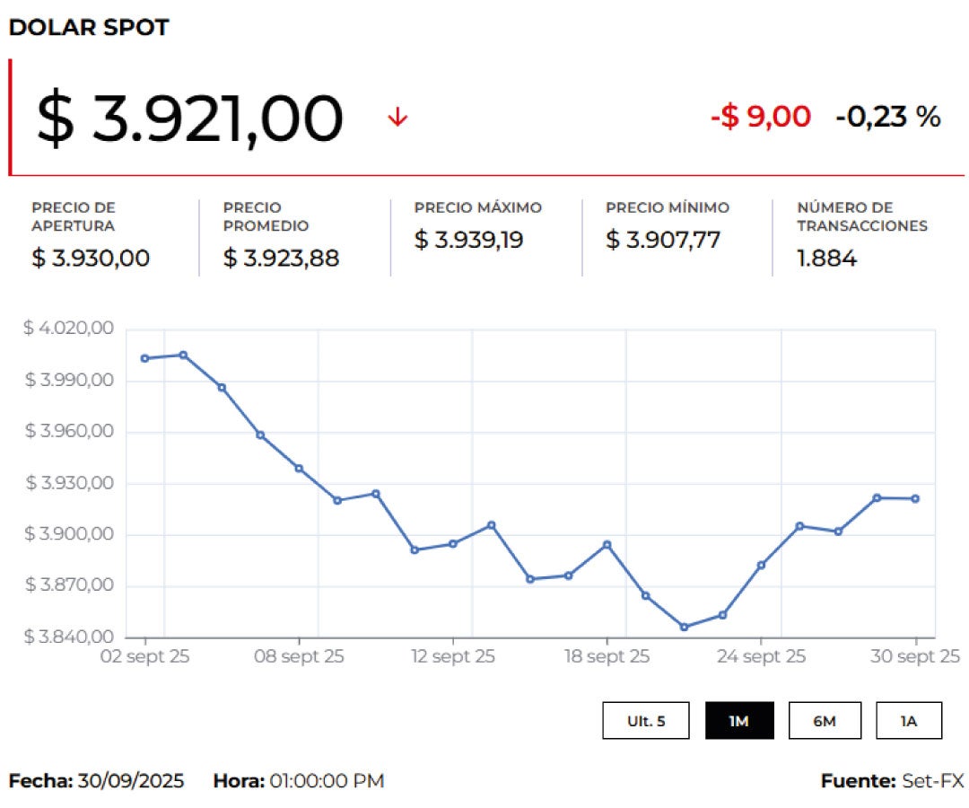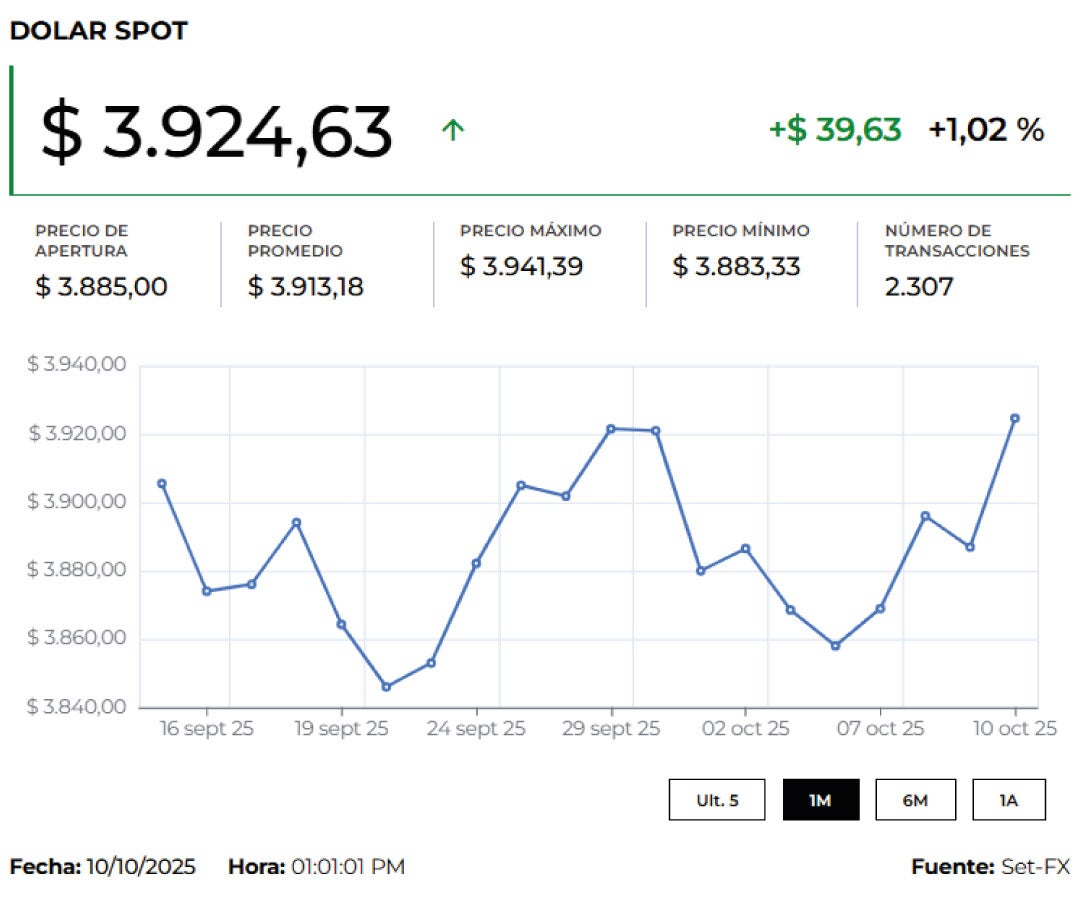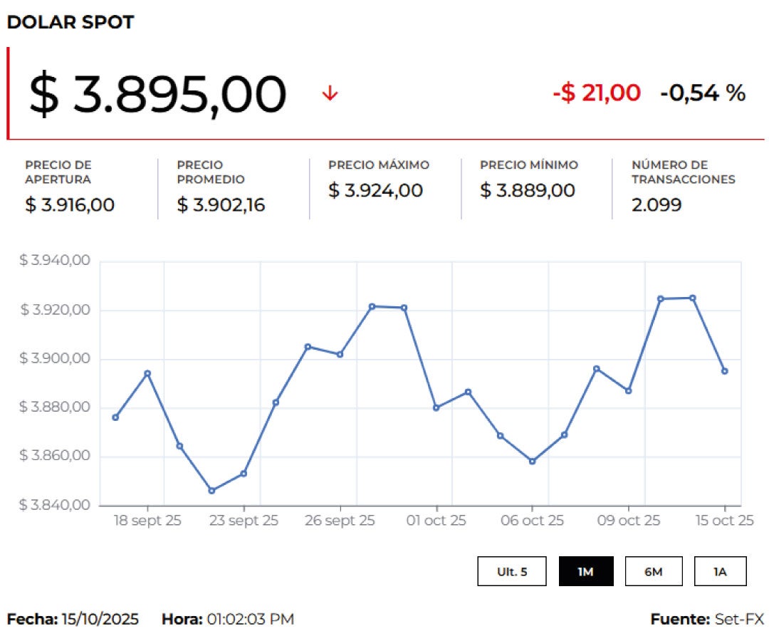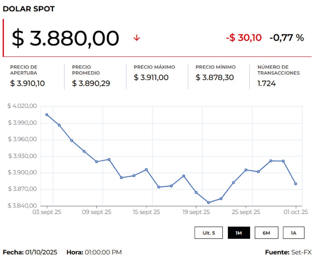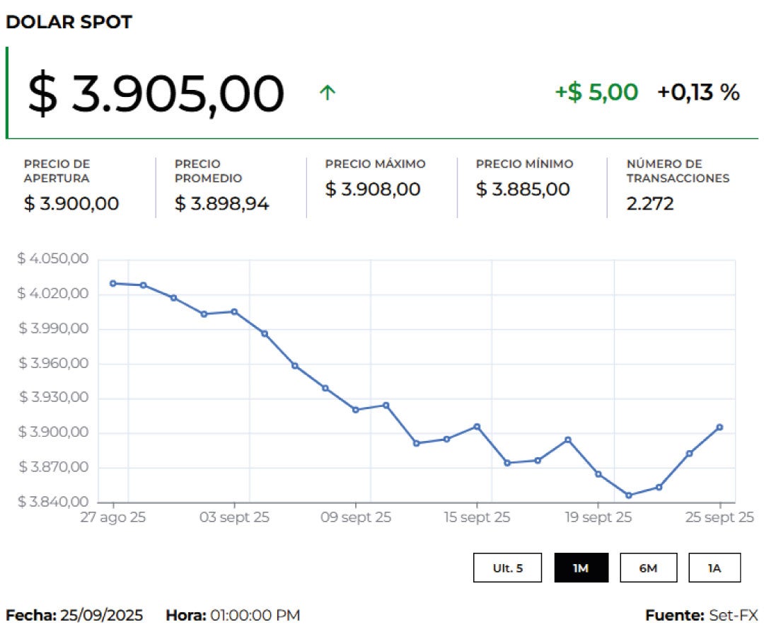 Además, la divisa registró un precio mínimo de $3.885 y un máximo de $3.885, con 3 transacciones por un monto de US$750.000
