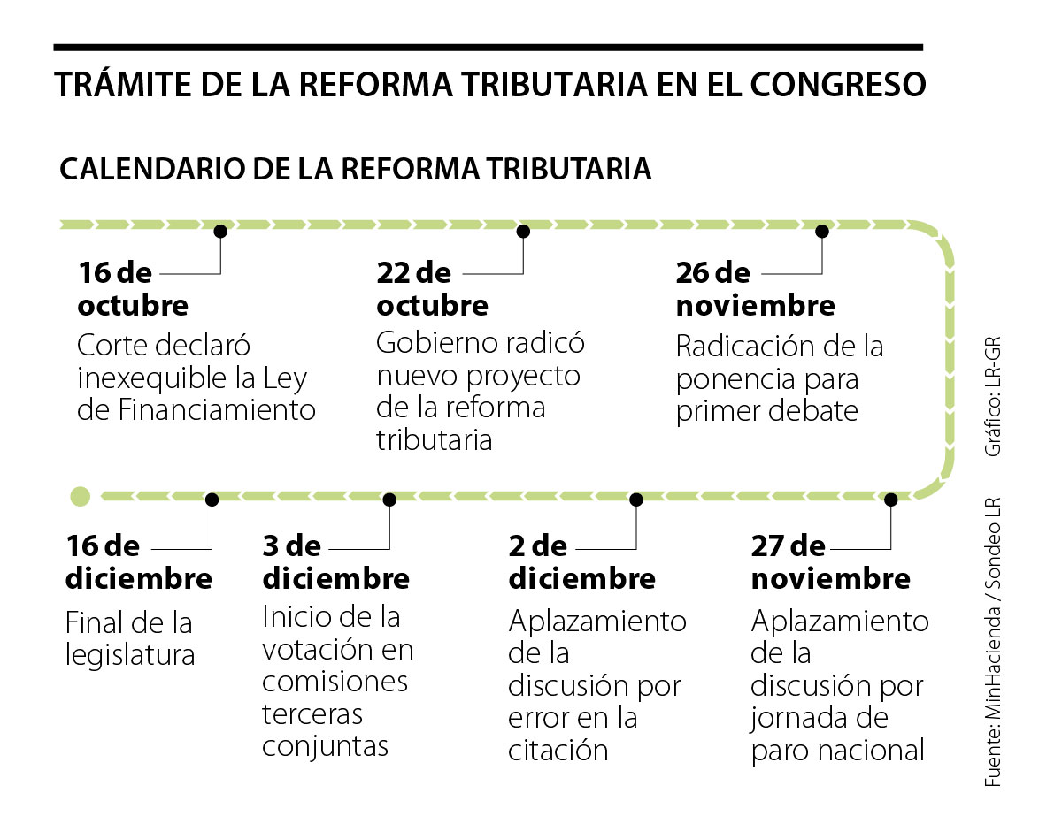 El tiempo corre en contra de la reforma tributaria que busca aprobar el Gobierno antes del 16 de diciembre, fecha en la que termina la legislatura, por lo que el proyecto solo tiene 10 días hábiles para surtir su trámite en el Congreso. Sin embargo, la discusión aún no supera siquiera su primer debate.