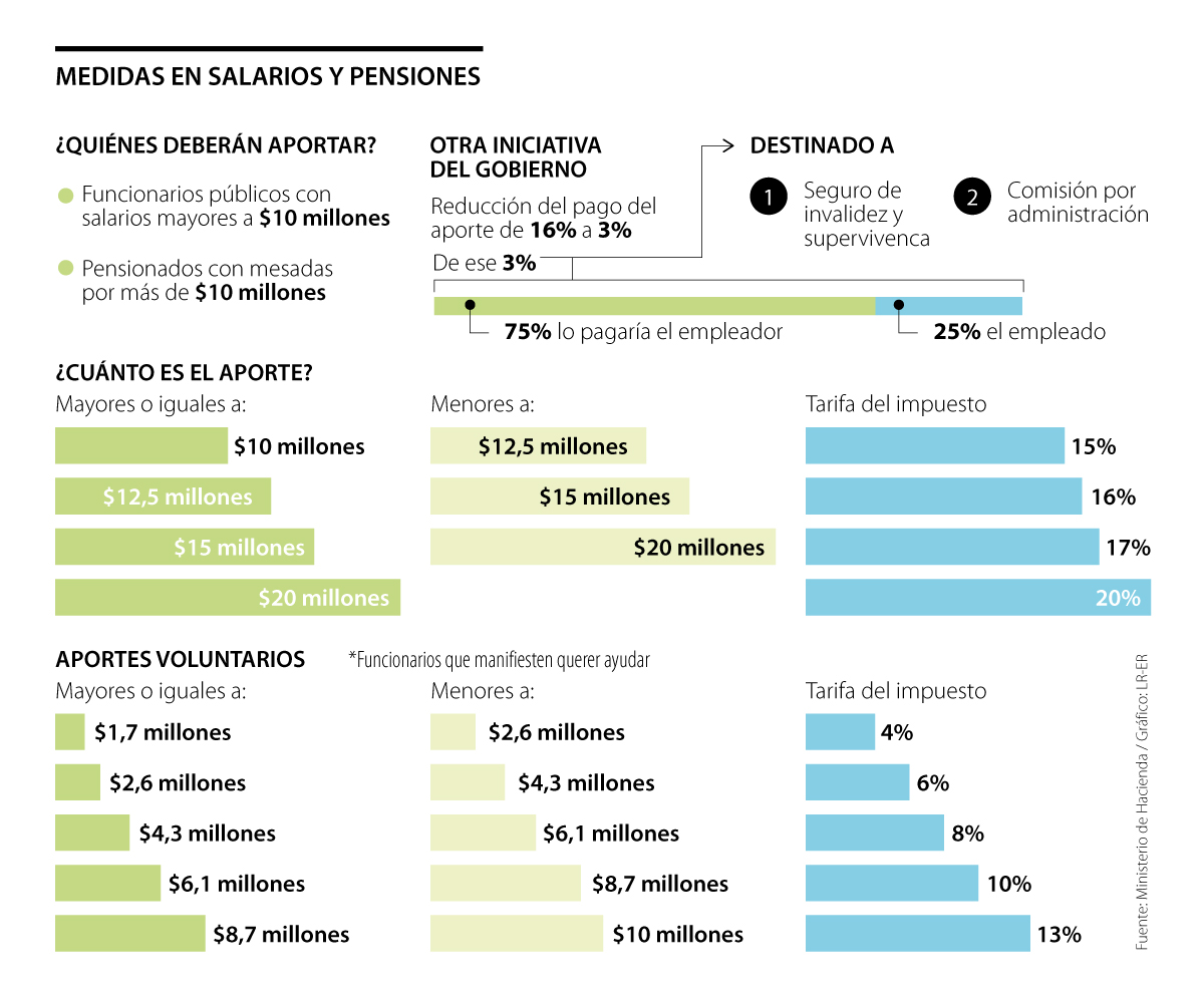 Se determinó que los funcionarios que ganen entre $10 millones y $12,5 millones deberán aportar 15% de su salario, mientras que los que tengan salarios entre $12,5 millones y $15 millones tendrán que aportar 16%. (Ver gráfico).