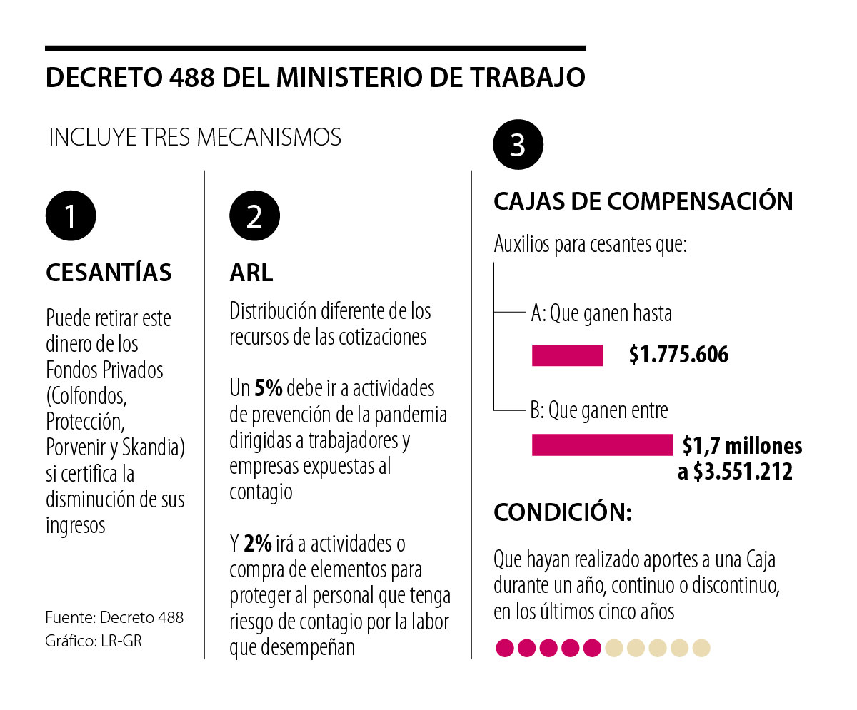 El Gobierno firmó el viernes el Decreto 488 que da línea para que las personas en medio de la crisis por el Covid-19 puedan recibir ciertos auxilios en dado caso de que se queden sin trabajo o bajen sus ingresos laborales.
