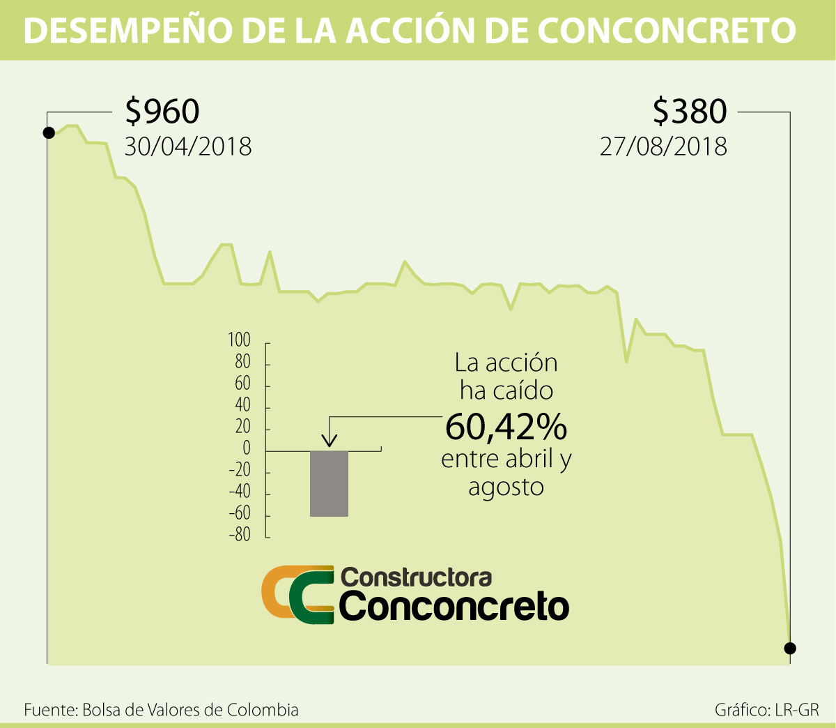 Al cierre de la Bolsa de Valores de Colombia (BVC), la acción de la compañía Constructora Conconcreto, la cual participa en el consorcio constructor de Hidroituango, se desvalorizó 24% cayendo de $500 a $380, su mínimo histórico.
