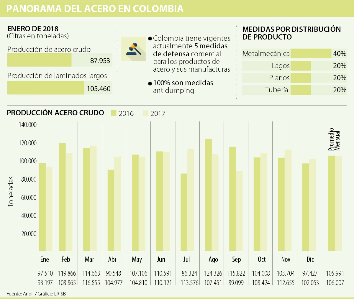 De acuerdo con la directora del Comité Colombiano de Productores del Acero, el año pasado en el país la industria de las acerías produjo 785.000 toneladas que generaron ingresos por US$414 millones en importaciones. Este sector sería el que recibiría el impacto directo de los flujos comerciales que están buscando nuevos mercados destino.