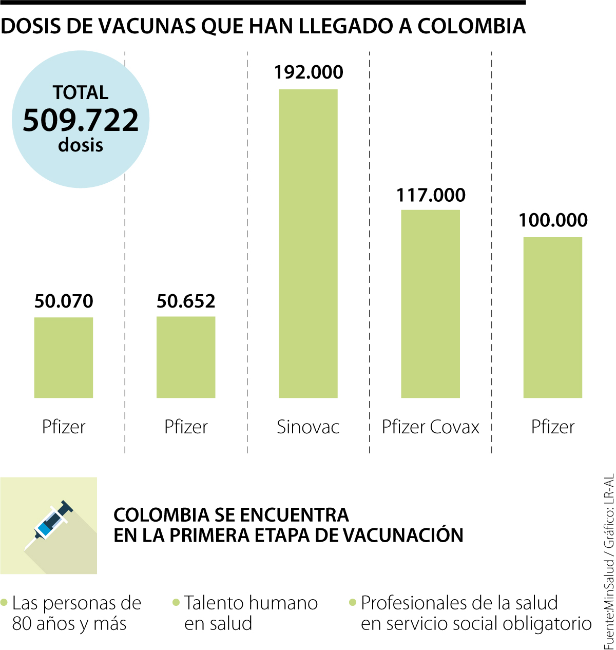 En el caso del acuerdo con la empresa china Sinovac, han llegado a penas 192.000 dosis de las 2,5 millones que el Gobierno acordó y a las que destinó recursos por $159.417 millones según una resolución del Ministerio de Hacienda.