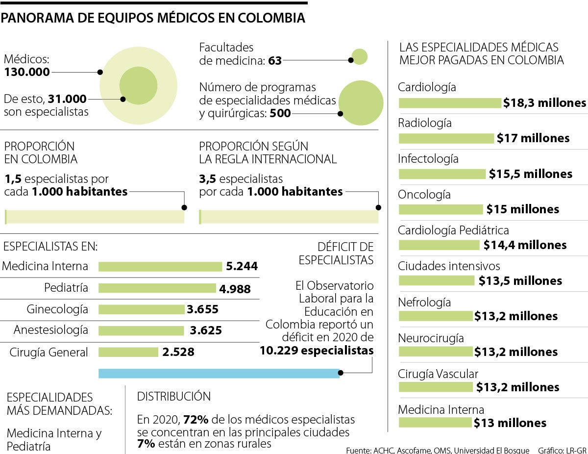 Según el Observatorio Laboral de la Educación en Colombia, en 2020 se reportó un déficit de 10.229 especialistas médicos.