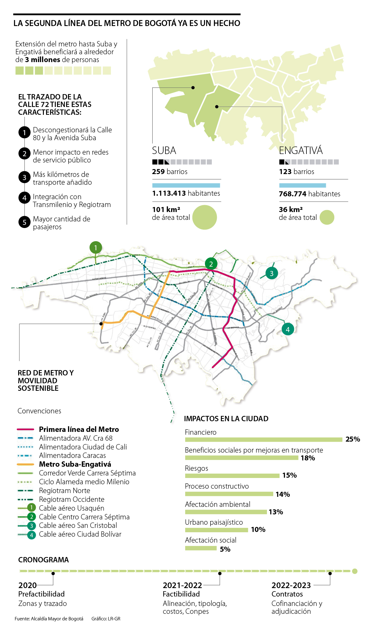 A solo 26 días de la última noticia que dio la gran obra de infraestructura del país con la firma del acta de inicio del metro de Bogotá, ayer, el Gobierno y el Distrito dieron a conocer que el sueño de extender la obra hasta Suba y Engativá se hará realidad y que, en consecuencia, en 2023 se harán las adjudicaciones de los contratos que iniciarán la construcción de este segundo tramo.