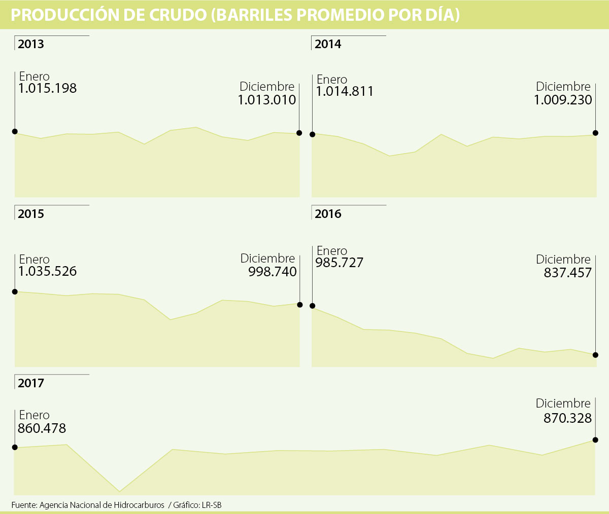 La cifra supera la meta oficial del Gobierno, que en el Marco Fiscal de Mediano Plazo está fijada en 840.000 barriles diarios. La expectativa de la agencia también es superior a la del Ministerio de Minas y Energía, cuyo jefe de cartera, Germán Arce, estima que la producción diaria sería 860.000 barriles.