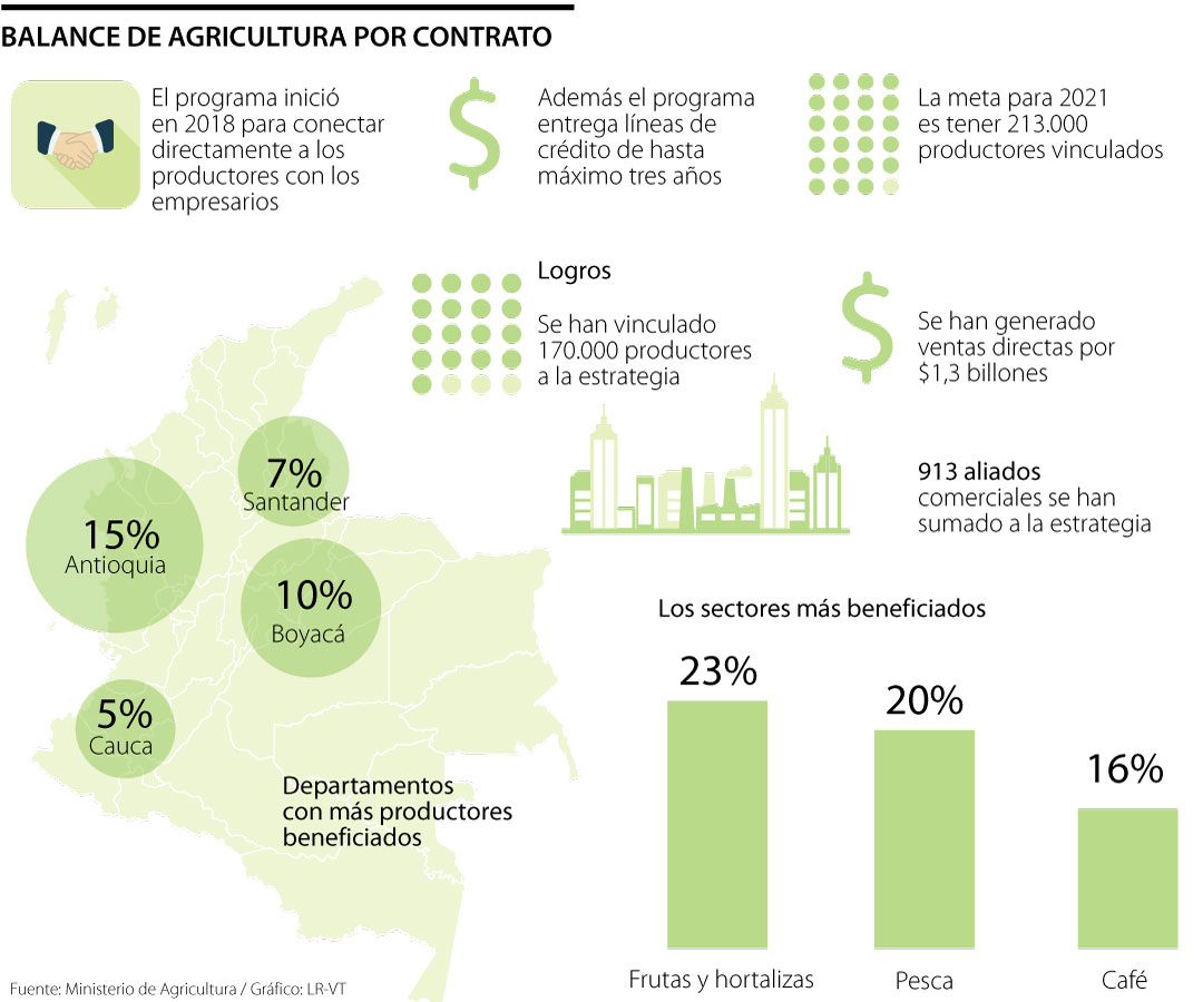 Con dos años y siete meses de vigencia, la estrategia ya deja frutos importantes con 170.000 productores vinculados que han vendido sus cosechas, sin intermediarios, a 913 aliados comerciales por un valor de $1,3 billones.