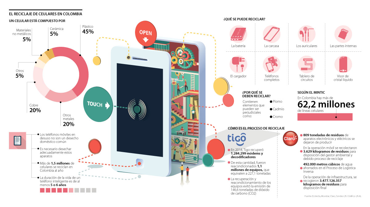 Y es que de acuerdo con las más recientes cifras de Ecolecta, programa de la Secretaría Distrital de Ambiente, anualmente se alcanzan a reciclar cerca de 1 millón de celulares. Esta cifra genera que, por ejemplo, tan solo en Bogotá, se produzcan un poco más de 300.000 kilogramos de residuos eléctricos y electrónicos peligrosos especiales a través de todas las campañas que vienen realizando las empresas del sector y los comercializadores.