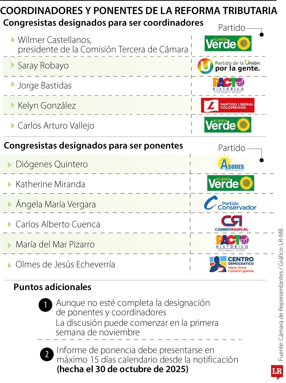 Ayer se conoció la lista de los coordinadores y ponentes para el primer debate del proyecto de reforma tributaria. La iniciativa fiscal pretende un recaudo de $16,3 billones, y con ello se financiaría el Presupuesto General de la Nación del próximo año que ya fue aprobado en el Congreso, el cual tiene un total de $549,6 billones.