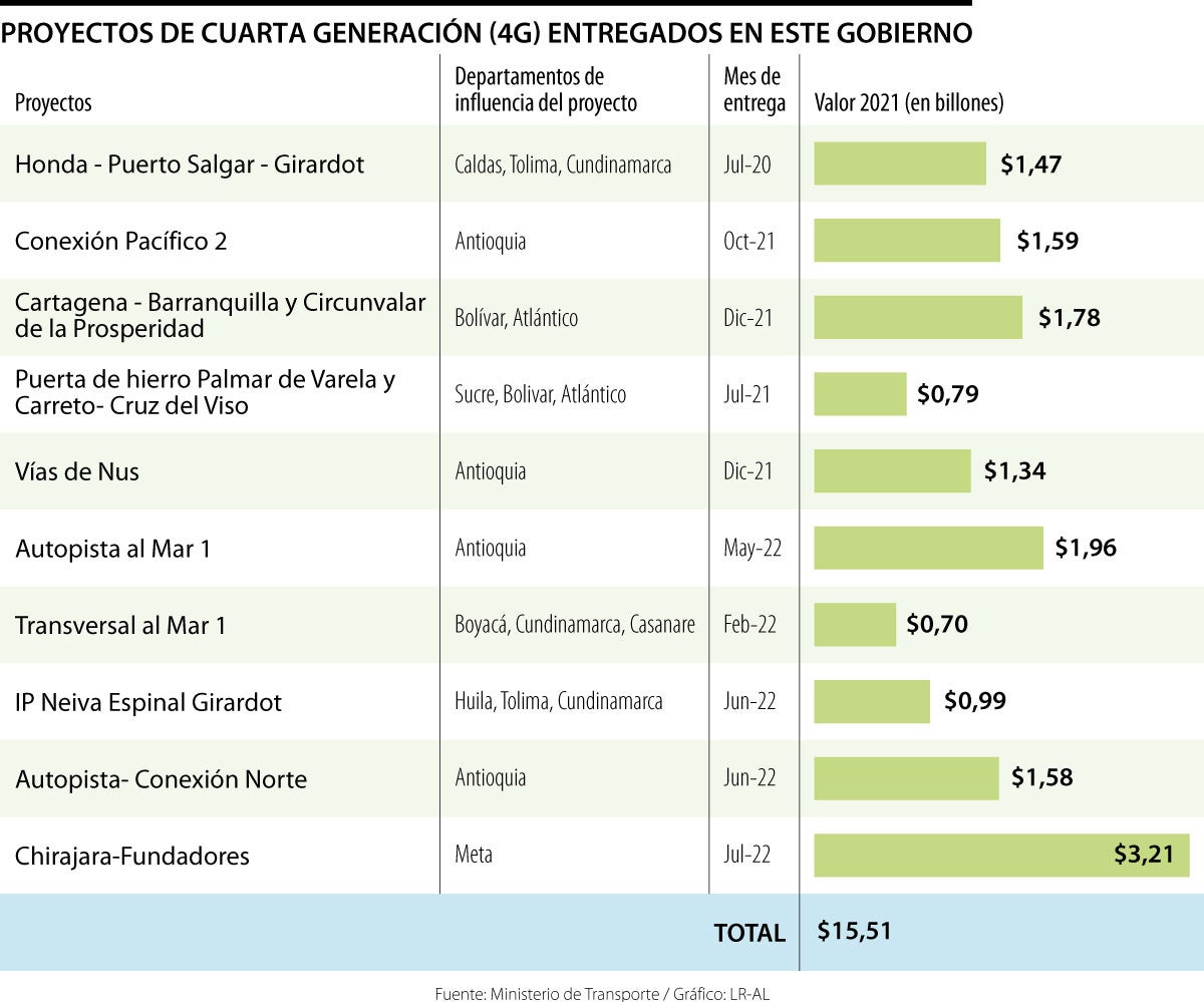 Los 10 proyectos que ya se ejecutaron contaron con una inversión de $15,5 billones.