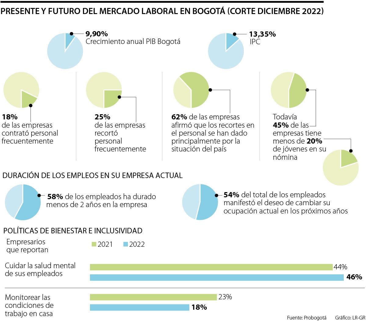 La coyuntura económica impactó al mercado laboral bogotano y de la región, razón por la que hasta 25% de las empresas han recortado personal para hacer un ajuste de sus costos fijos. Esto lo reveló Probogotá Región e Invamer en la Segunda Encuesta de Mercado Laboral; “Presente y Futuro del Trabajo en Bogotá Región 2022”.