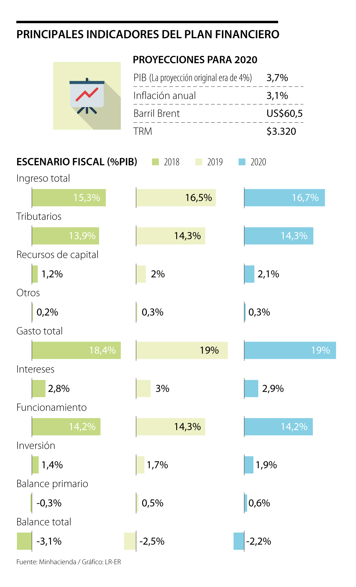 En concreto, la cifra que prevé Carrasquilla fue de 3,3%, lo que ocasionó que la proyección para 2020, que estaba pensada para alcanzar un incremento de 4%, quedara en 3,7%.