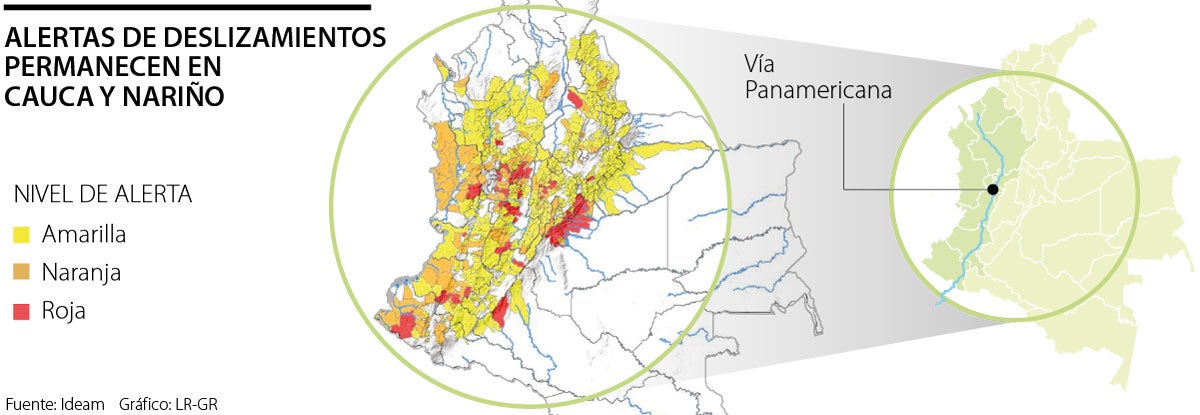 En el sur del país, y en varios municipios por los que pasa la vía Panamericana, el Ideam espera lluvias entre 20% y hasta 30% por encima de lo normal, se extenderían hasta marzo