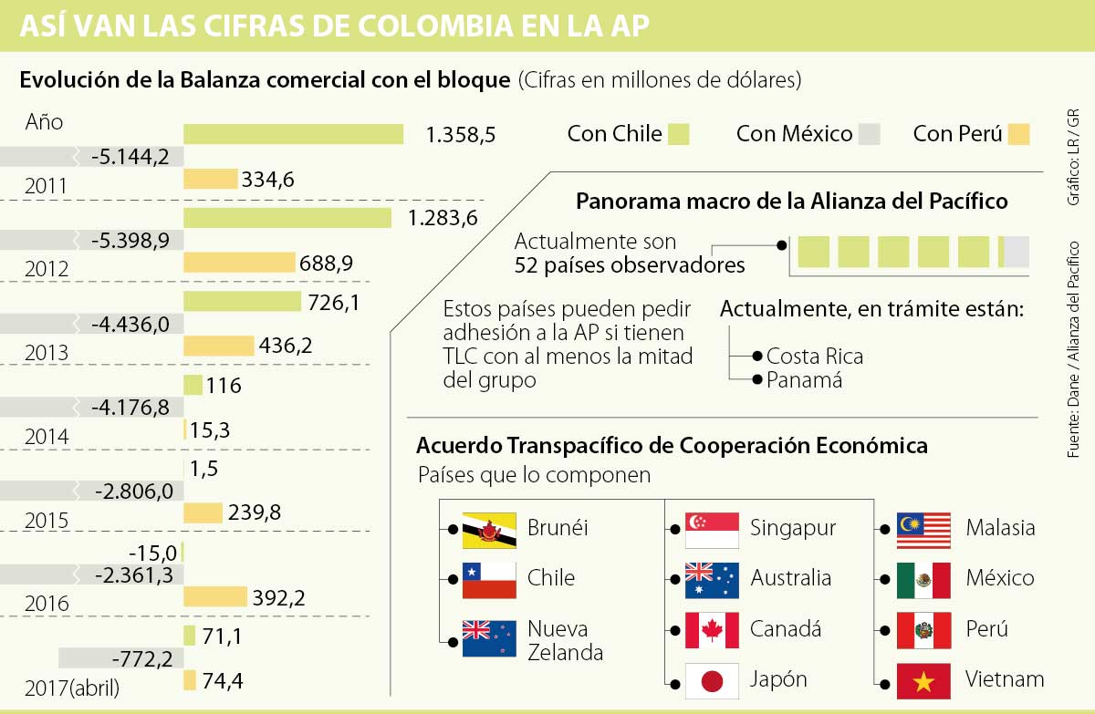 Hay que destacar además que Colombia es el único país del bloque suramericano que no está en el TPP, por lo que se debe revisar el aporte de los cuatro estados asociados que llegan a la Alianza.