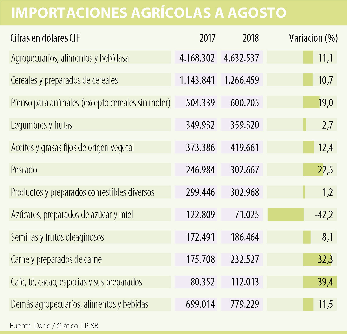 Entre tanto, y a pesar del encarecimiento del dólar, las importaciones en agosto tuvieron un crecimiento de 9,3% frente al mismo mes del año pasado, jalonadas principalmente por las manufacturas.